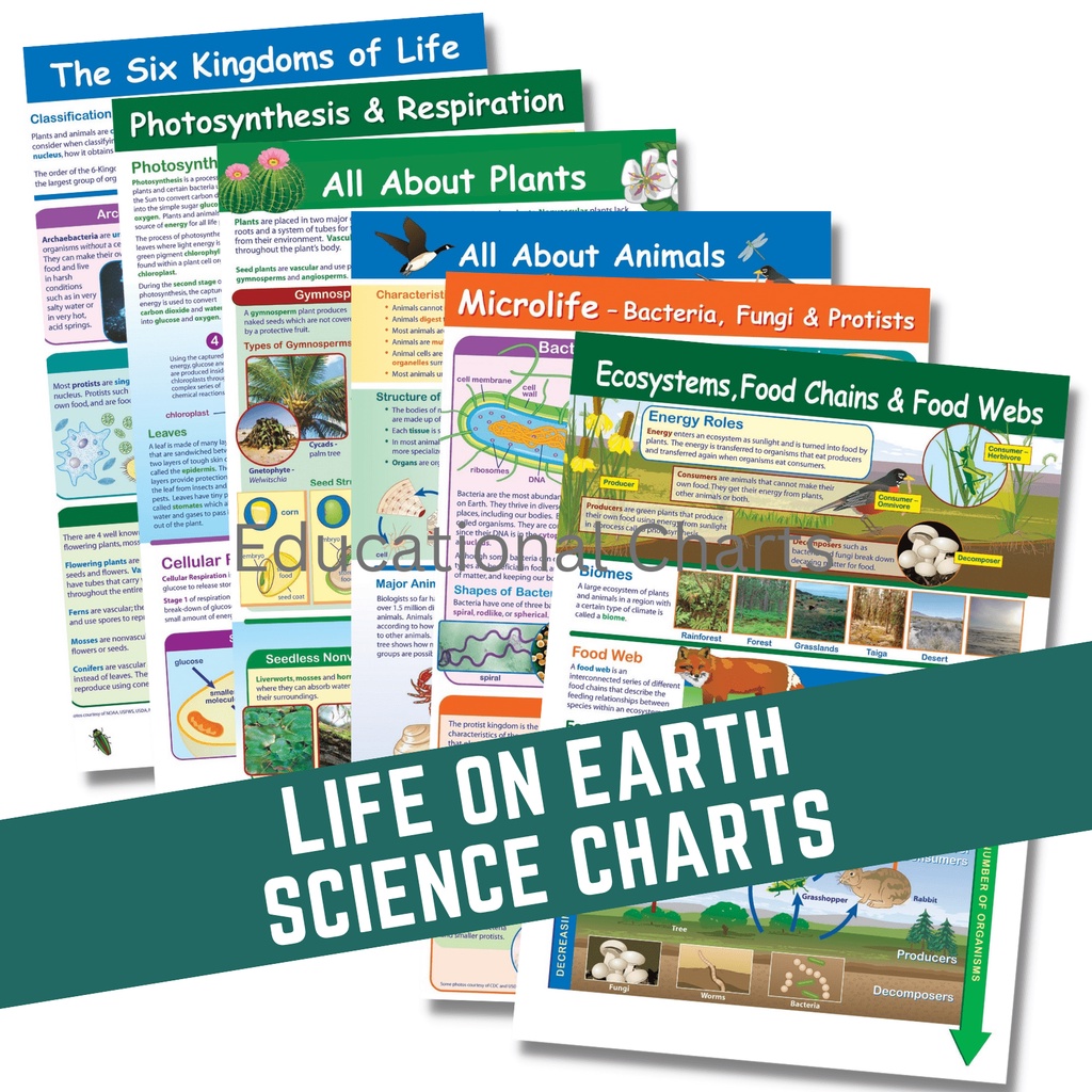 SCIENCE CHARTS PLANTS BACTERIA ANIMALS PHOTOSYNTHESIS ECOSYSTEM KINGDOM MICROLIFE KIDS EDUCATIONAL