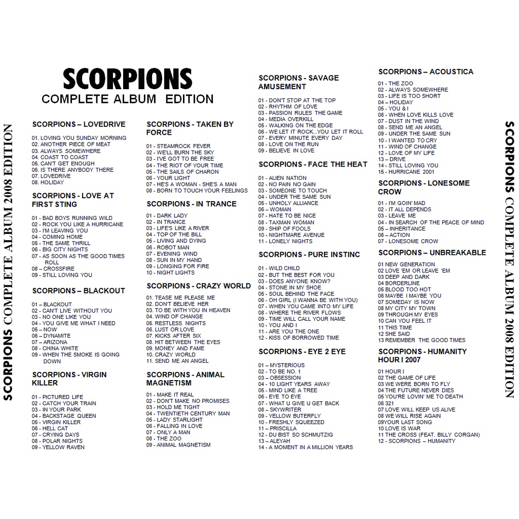 SCORPIONS MP3 music CD for PCCDROM and compatibles.