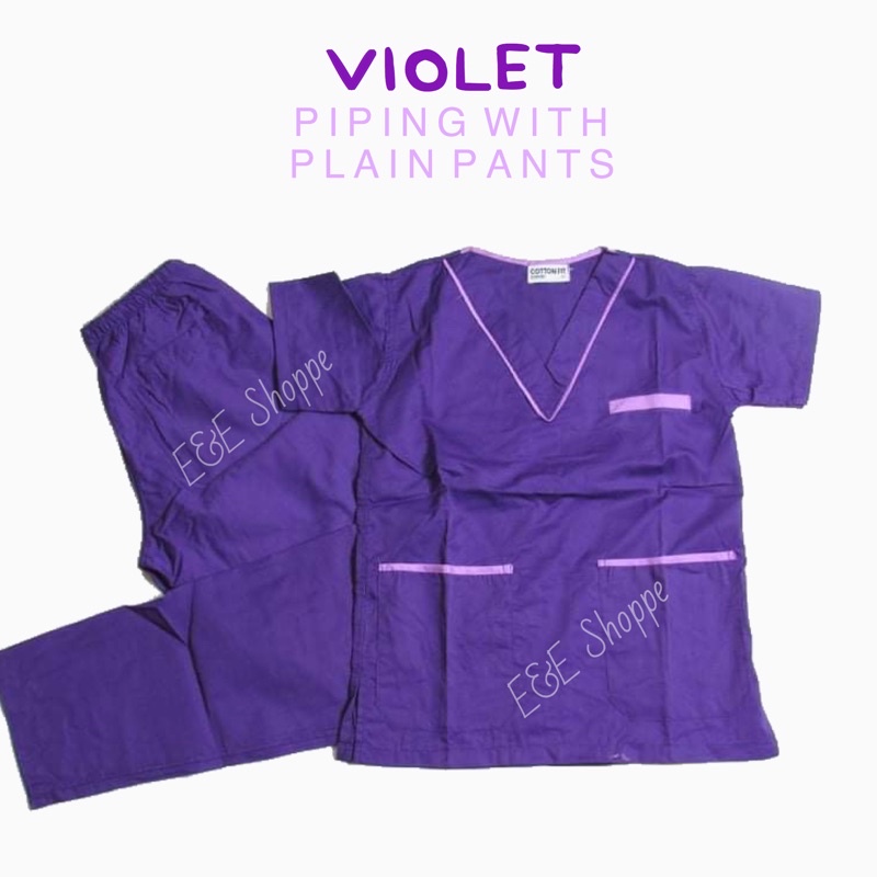 SCRUB SUIT Set-UNISEX (VIOLET - Piping with non cargo pants)