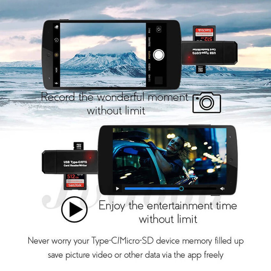 SD/Micro SD Card Reader Writer USB 2.0 Memory Card Reader OTG Adapter Viewer Micro SD/TF Compact Fla
