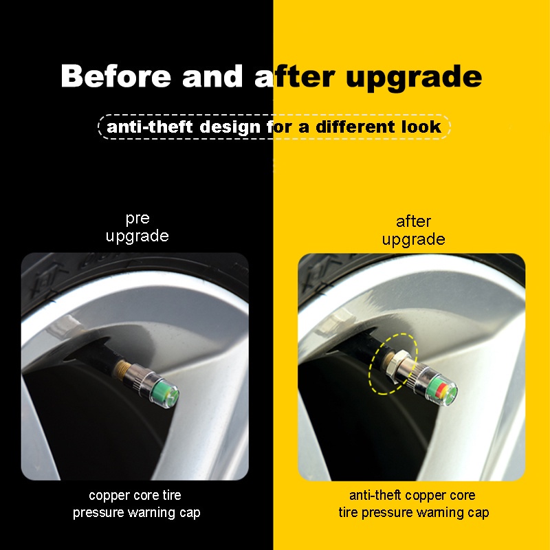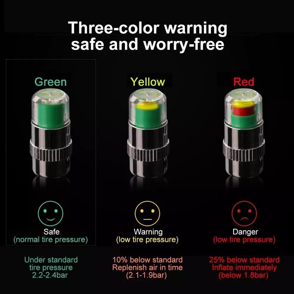 4Pcs/set Cars Tire Air Pressure Monitor 3 Color Alert Indicator Tire Valve Cap Gauge