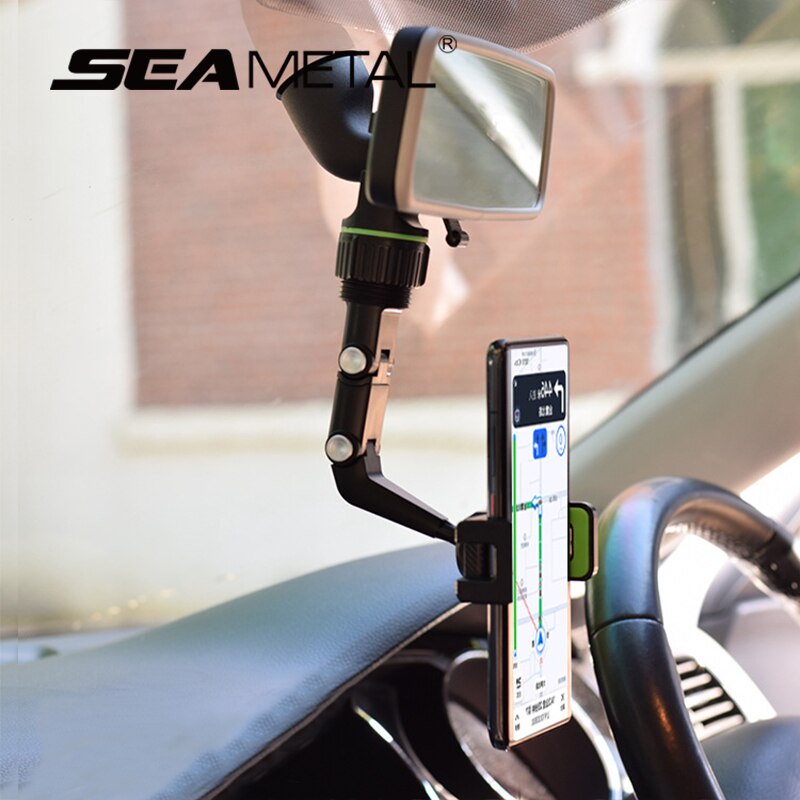 SEAMETAL Car Rearview Mirror Phone Holder 360 Rotating Phone Stand Adjustable Cellphone Holder Clip