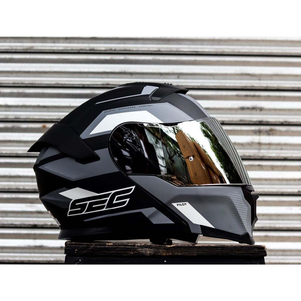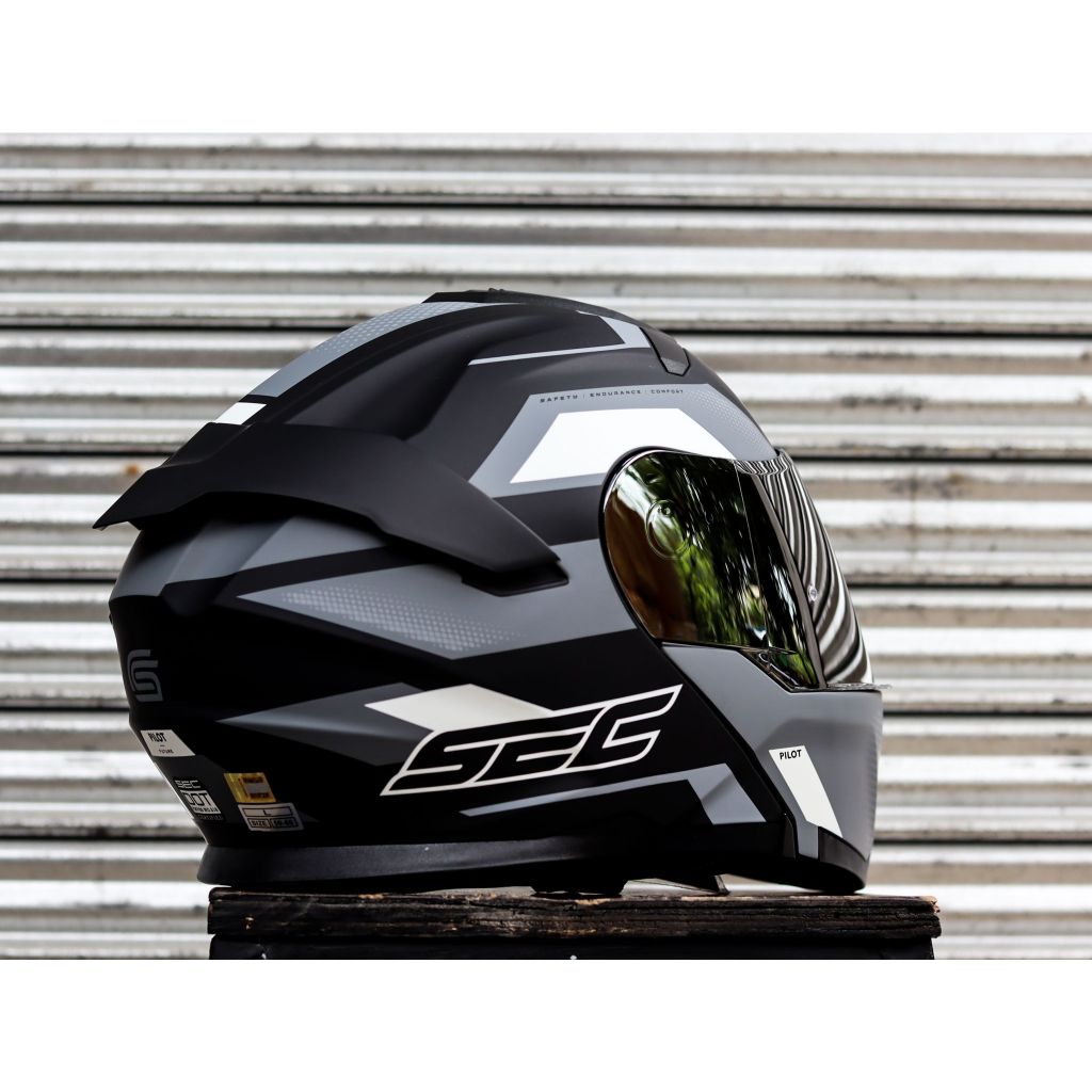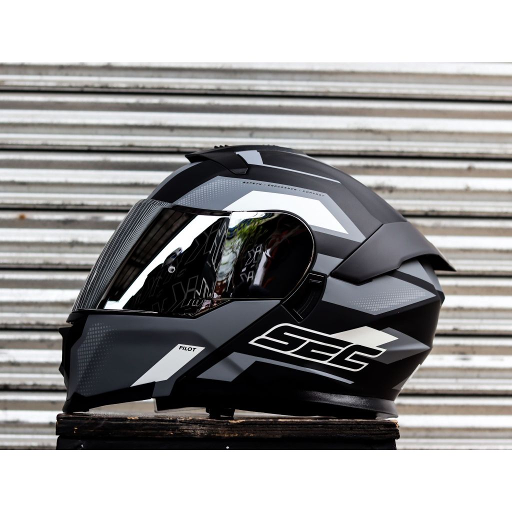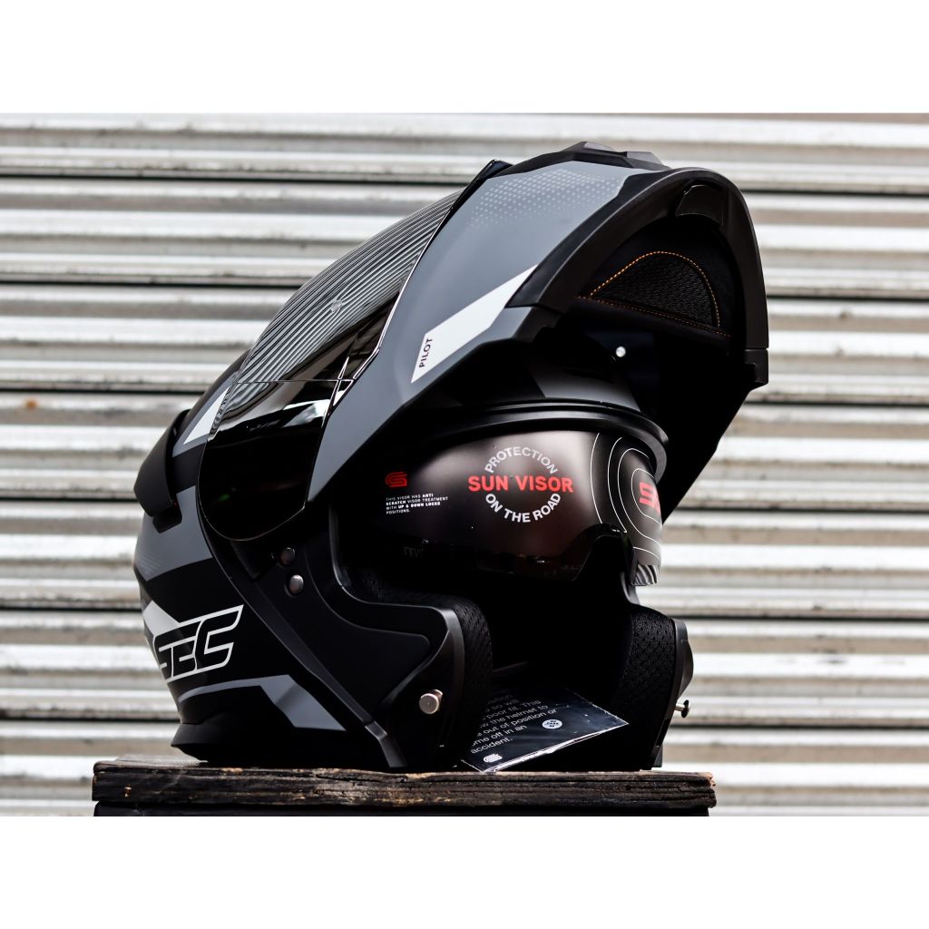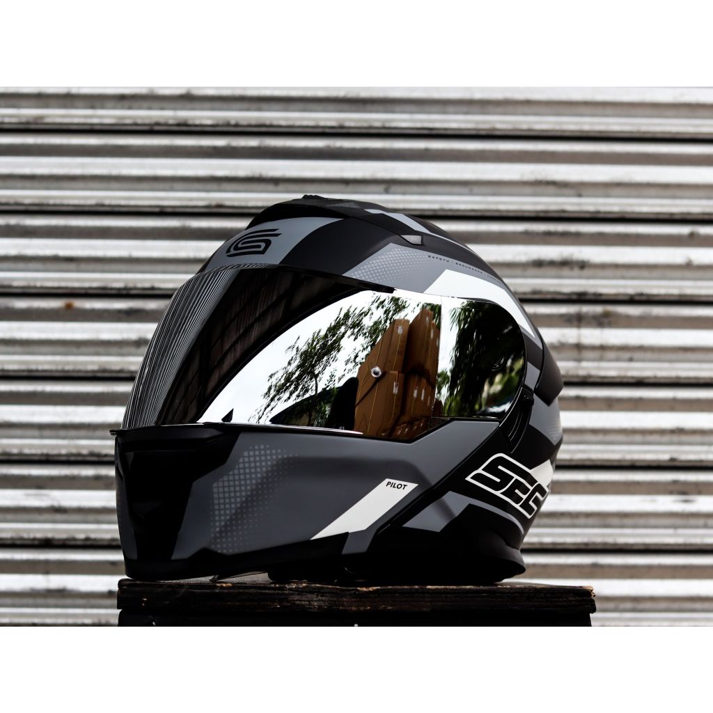 SEC HELMET PILOT FUTURE BLACK GRAY WHITE MODULAR WITH FREE CLEAR LENS