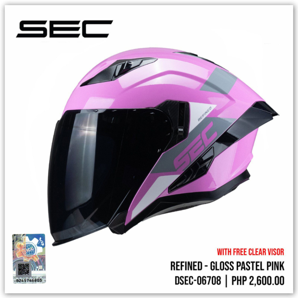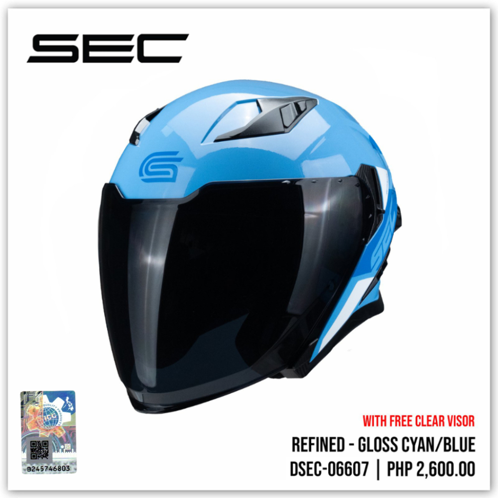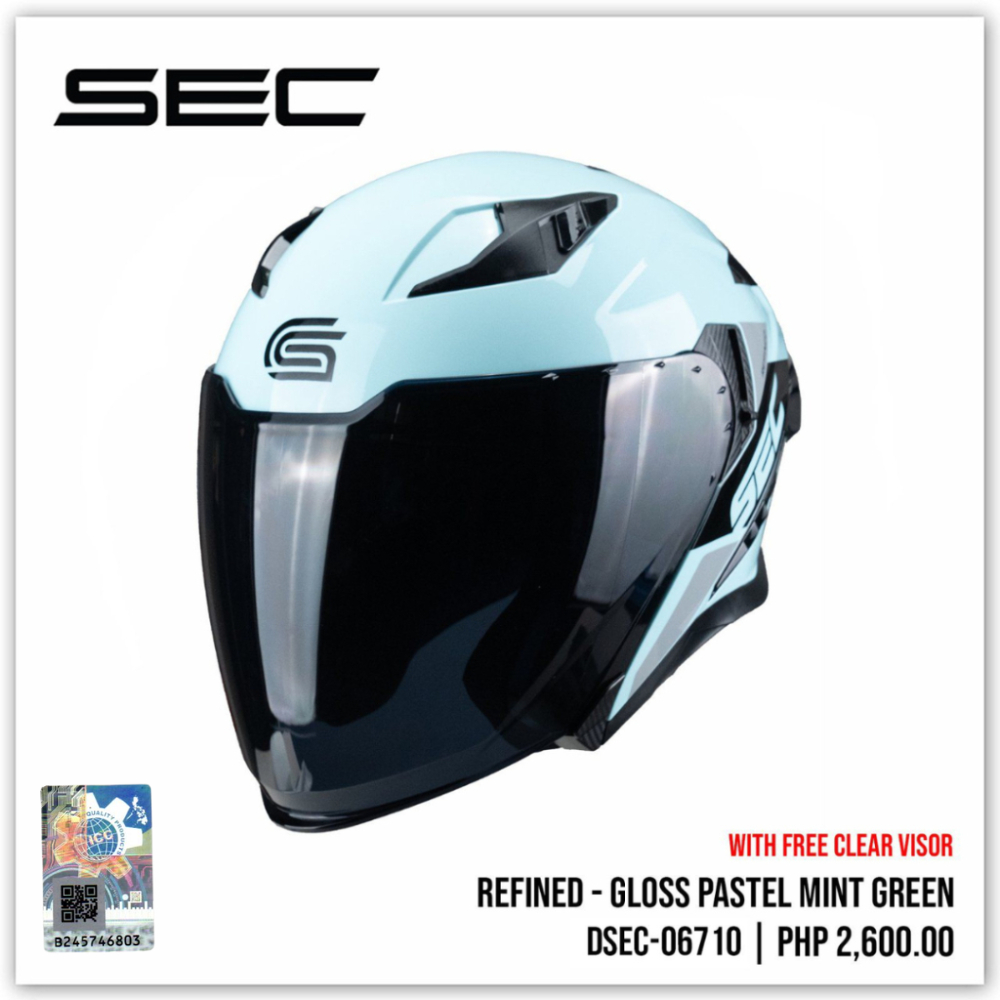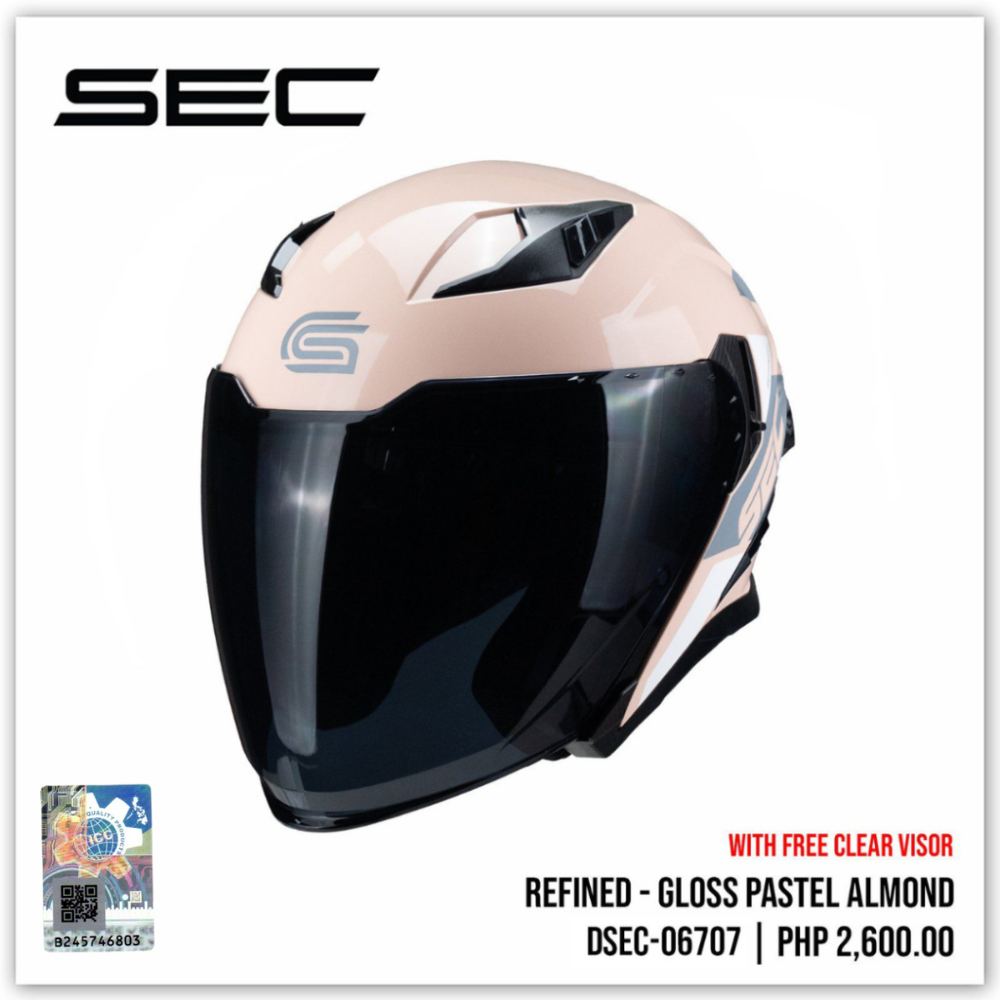 SEC Half Face Helmet for Motorcycle - Refined Gloss (M-XL)