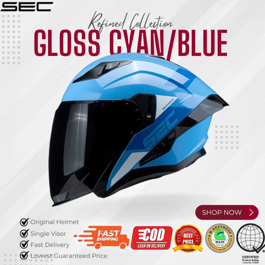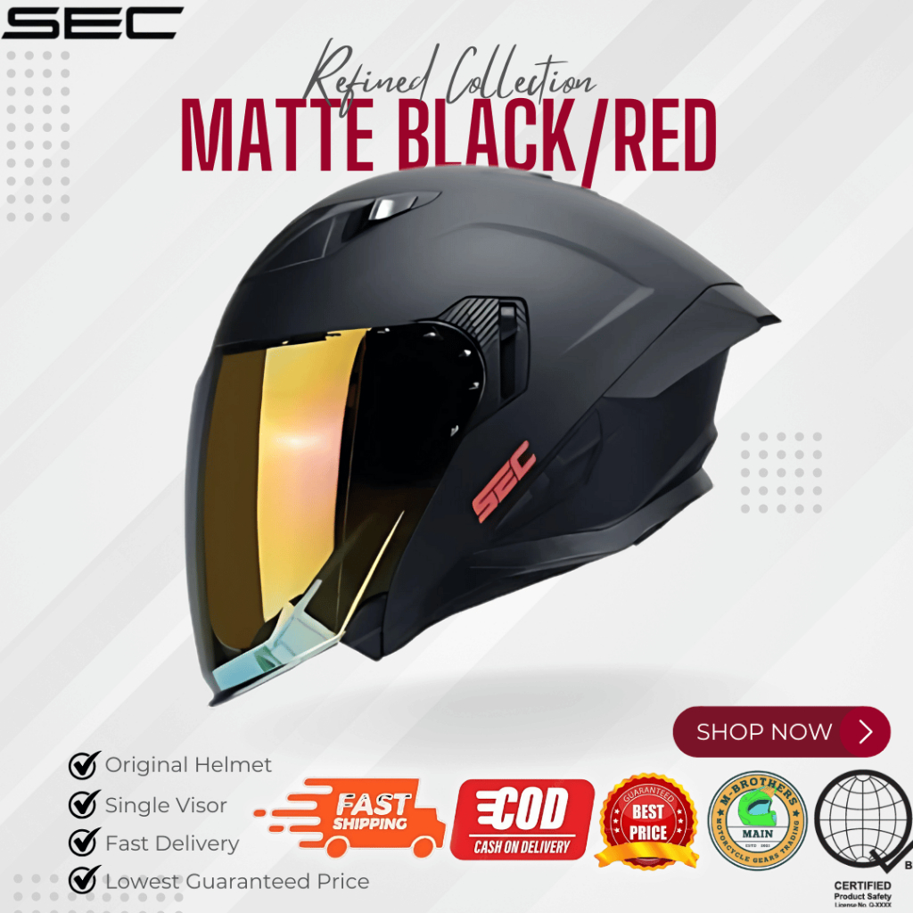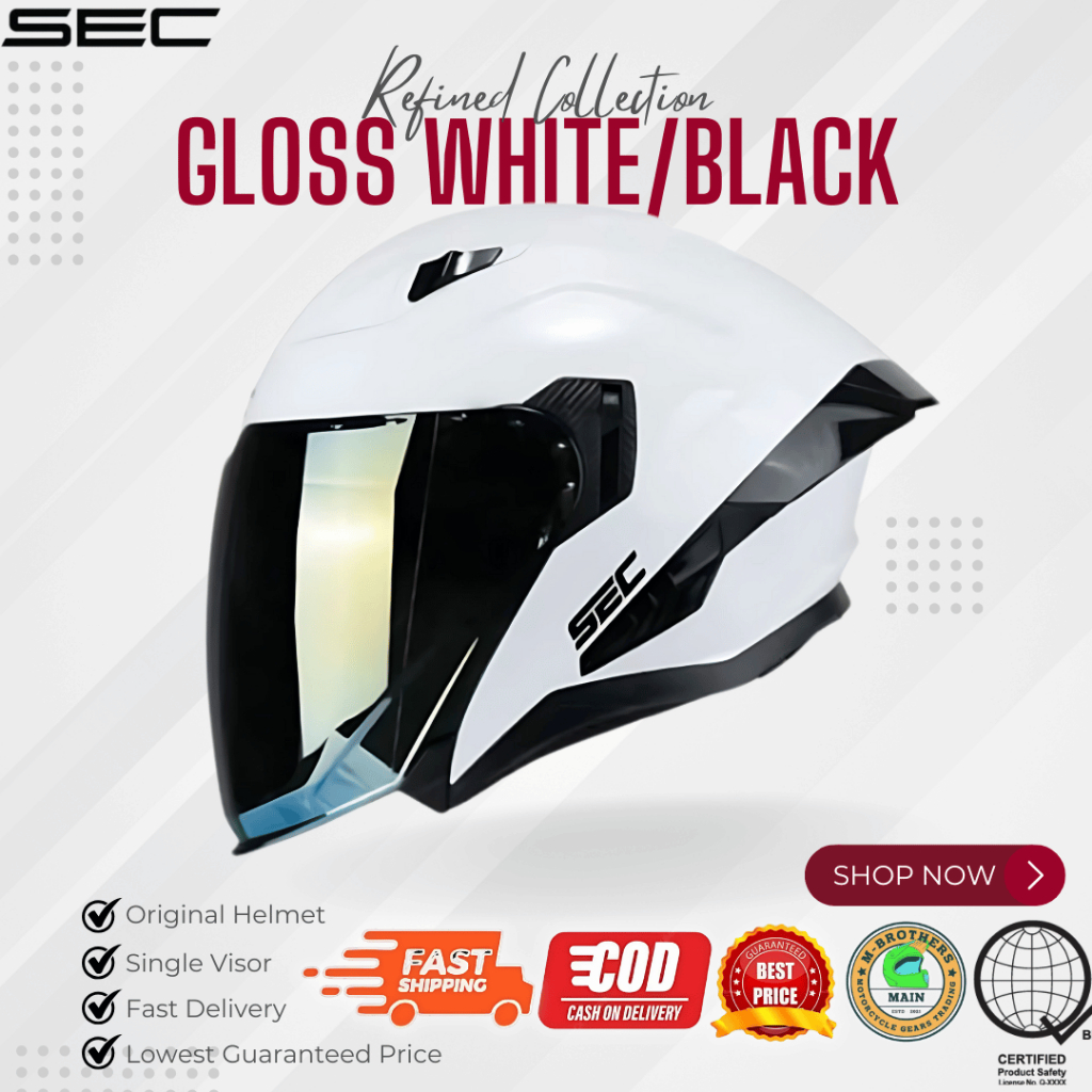SEC REFINED (DUAL VISOR) Half Face Helmet for Motorcycle - Gloss/Matte