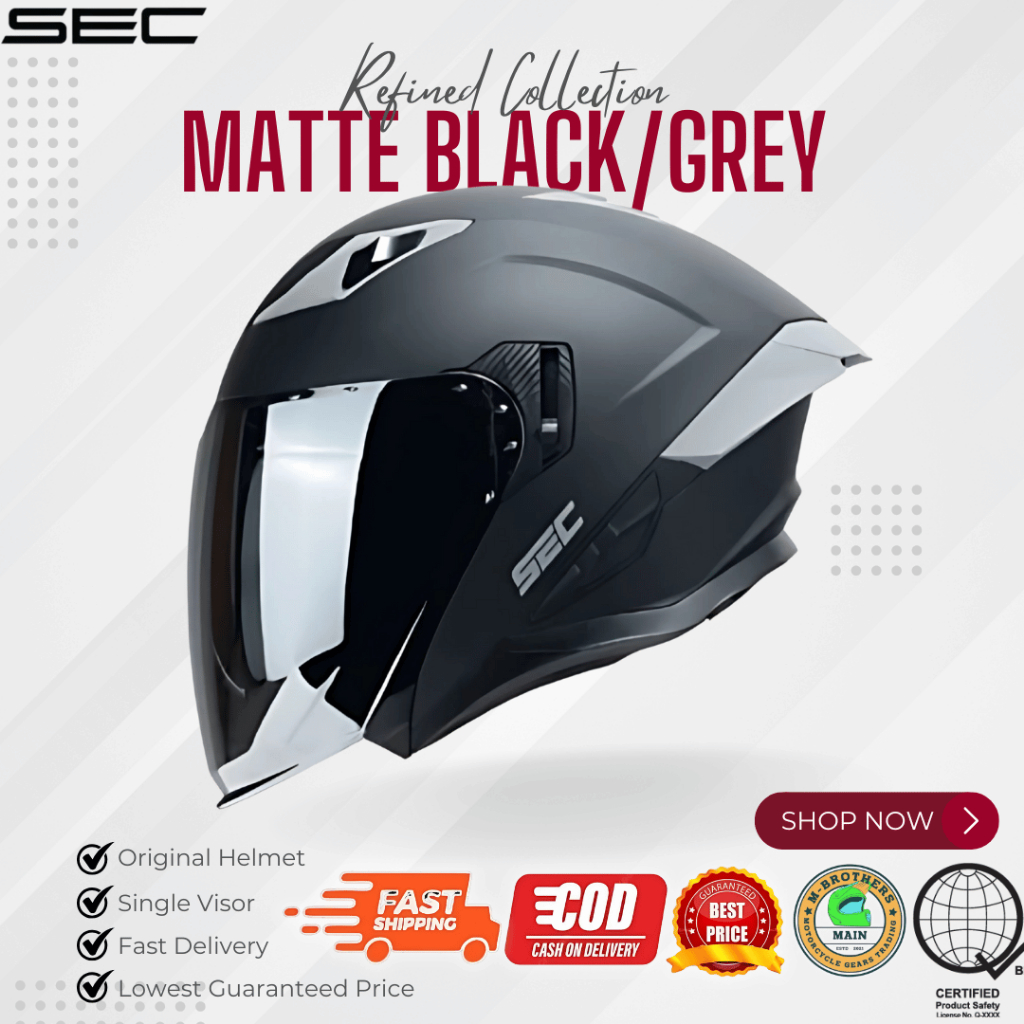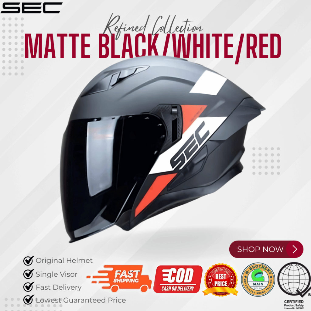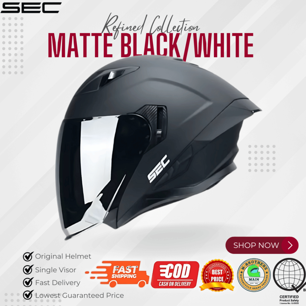 SEC REFINED (DUAL VISOR) Half Face Helmet for Motorcycle - Gloss/Matte