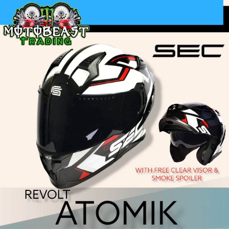 SEC Revolt Atomik Graphics Modular Helmet w/ Free Clear Visor and Spoiler