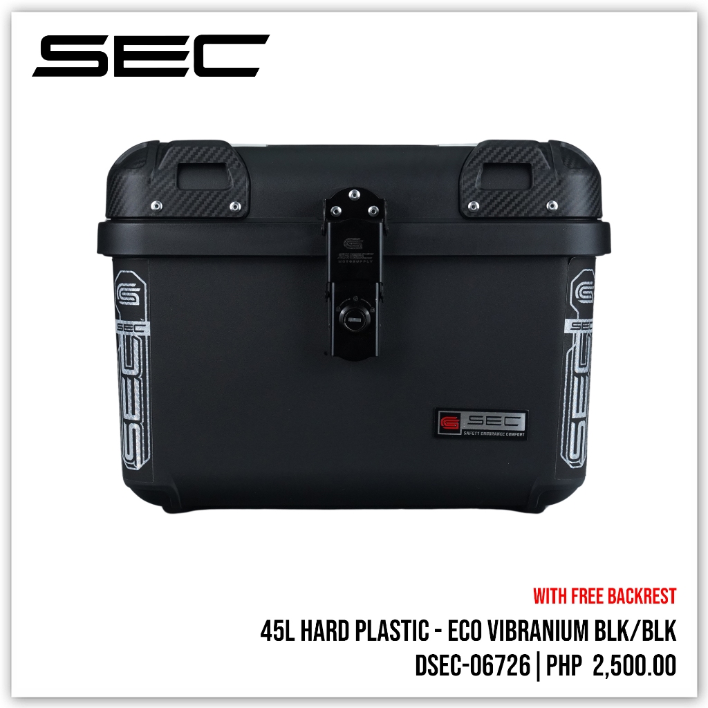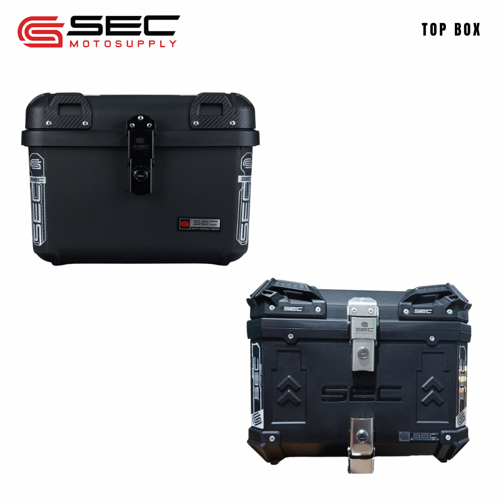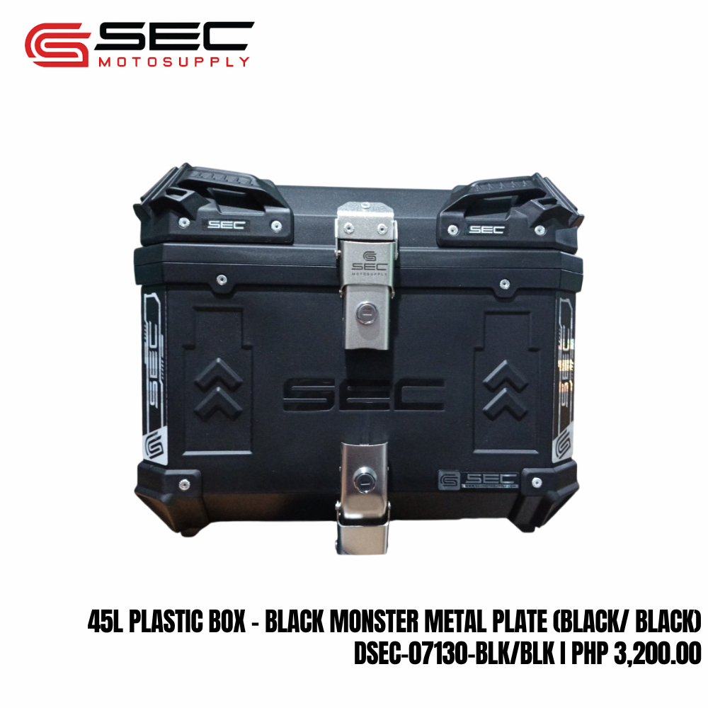 SEC 45L Plastic Top Box for Motorcycle – ECO Vibranium & Monster with Alloy Plate