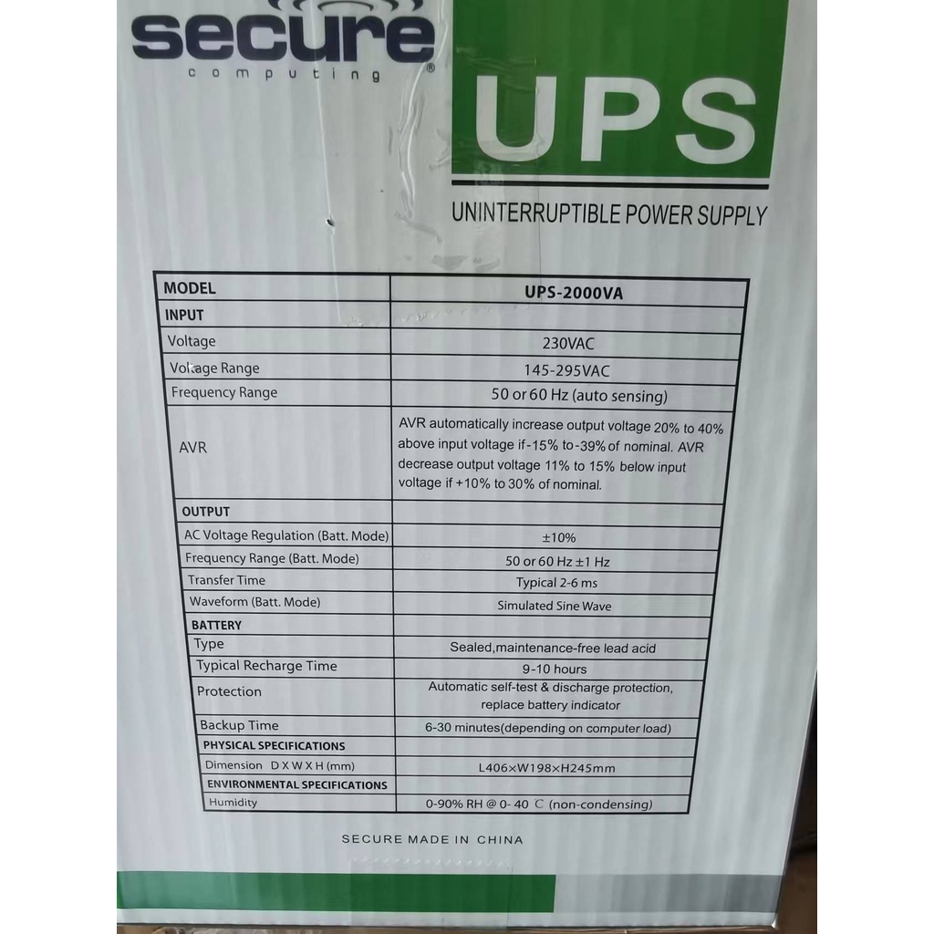 SECURE UPS 2000VA Uninterruptible Power Supply Desktop power surge protection