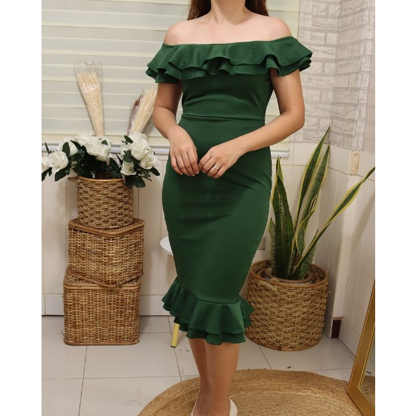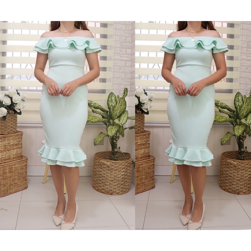 SEMI FORMAL JADE OFF SHOULDER DRESS/WEDDING GUEST ATTIRE/PARTY DRESS/ENTOURAGE GOWN/WEDDING ATTIRE