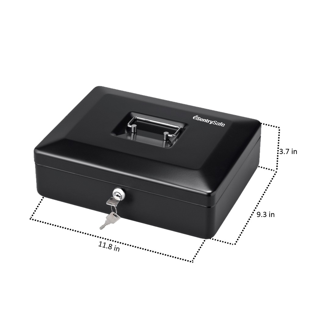 SENTRY SAFE DCB-12 Security Protection 12" Deluxe Cash Box with Key Lock and Money Clips, Coin Tray