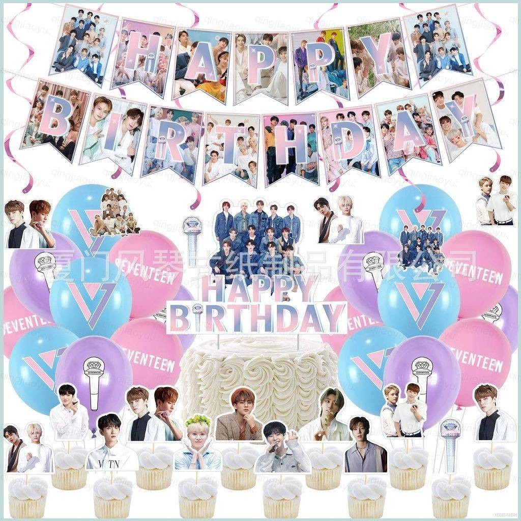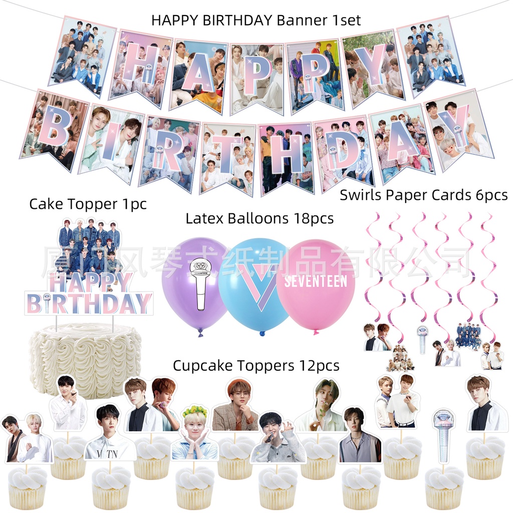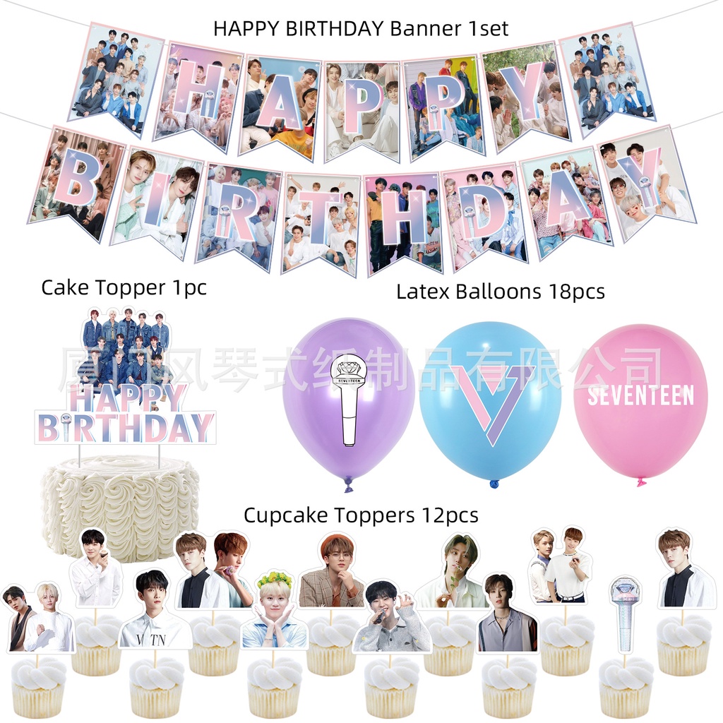 SEVENTEEN Theme birthday party decorations banner cake topper balloon set supplies