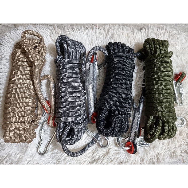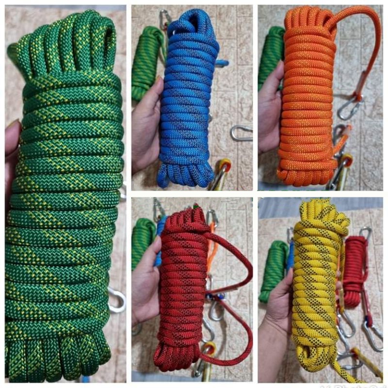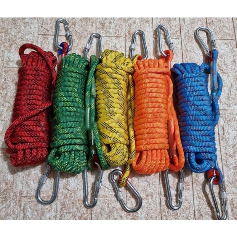 SFS*10mm Climbing/Hiking Rope Safety Rescue Utility Rope (Reflective Green Line) 2 Climbing Buckles