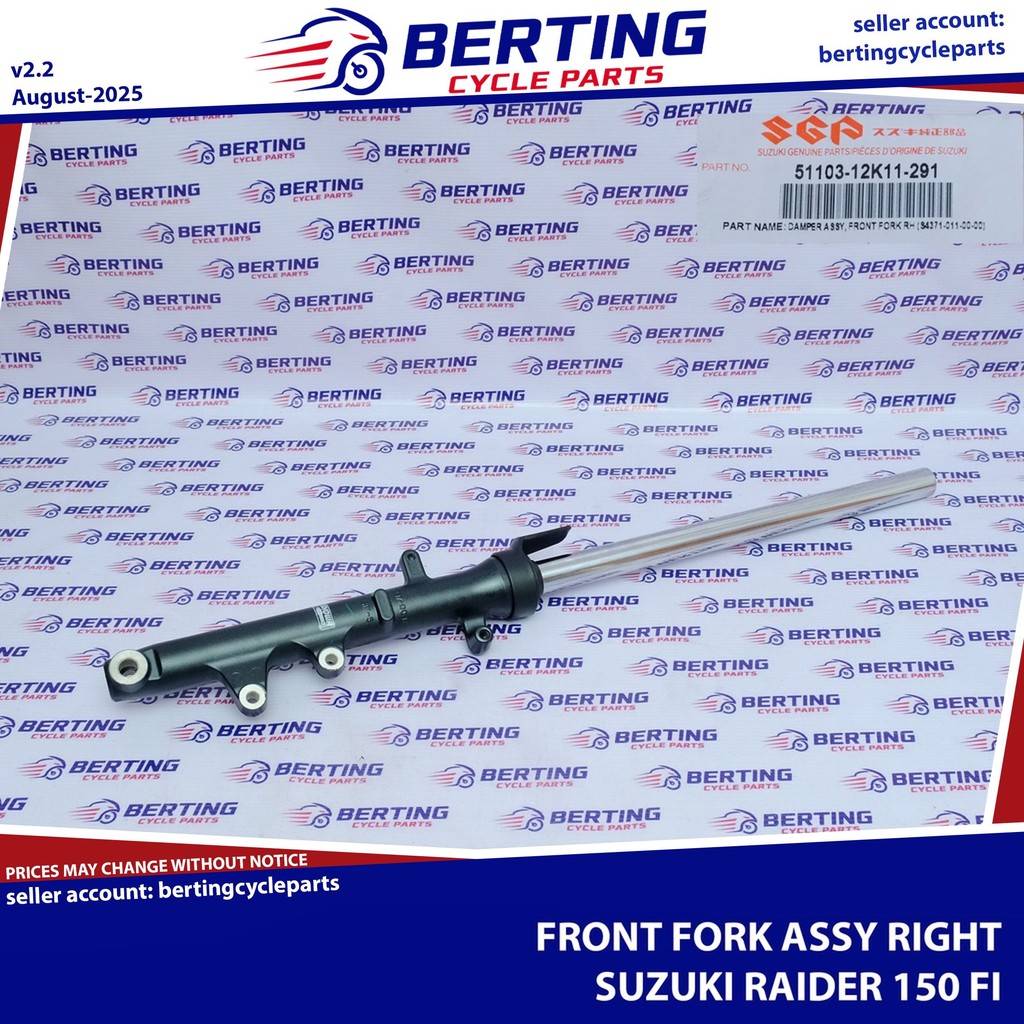 SGP FRONT FORK ASSEMBLY Suzuki Raider 150 FI Genuine 51103-12K11-291 51104-12K11-291