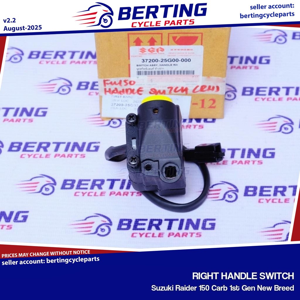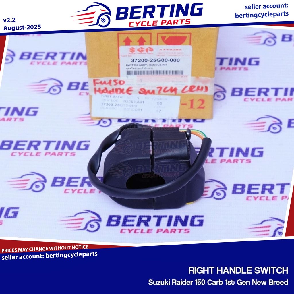 SGP RIGHT HANDLE SWITCH Suzuki Raider 150 Carb 1st Gen New Breed Genuine 37200-25G00-000