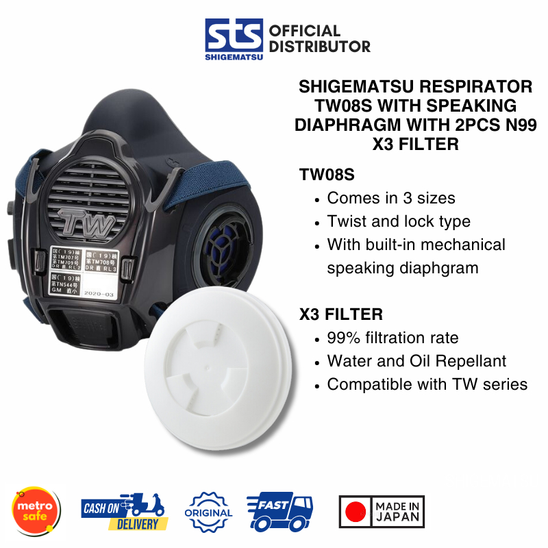 SHIGEMATSU TW08S with 2pcs N99 X3 Filter Half Face Double Valve Respirator with Speaking Diaphragm