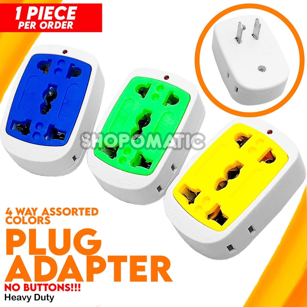 SHOPOMATIC 4 Way Plug Adaptor NO BUTTONS Assorted Colors Heavy Duty