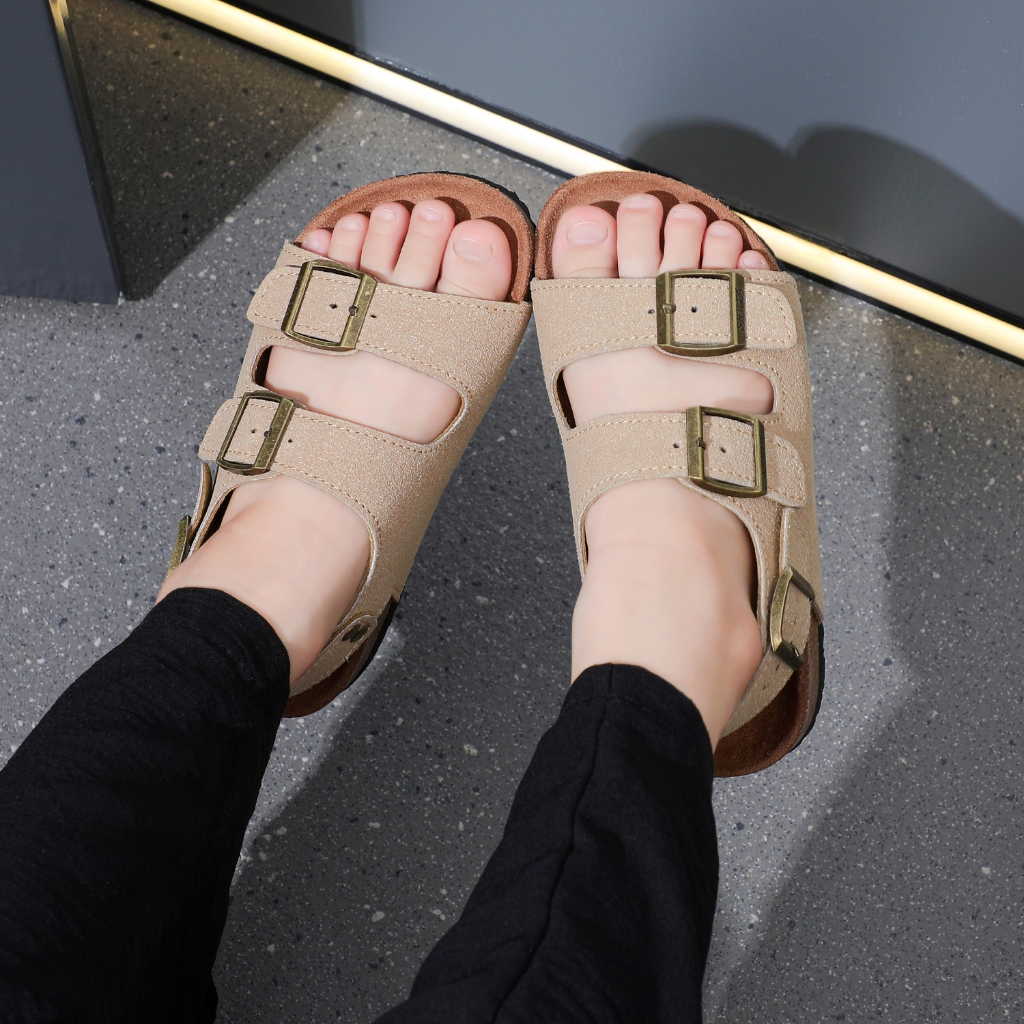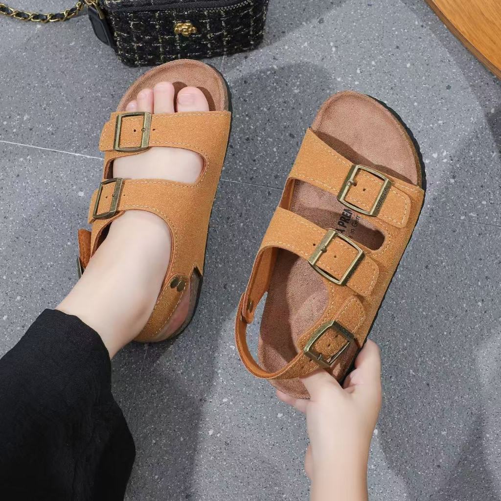 SHUTA New Style Children's Cork Sole Two Buckle Strap Rubber Flat Sandals For Kids Girl&Boy