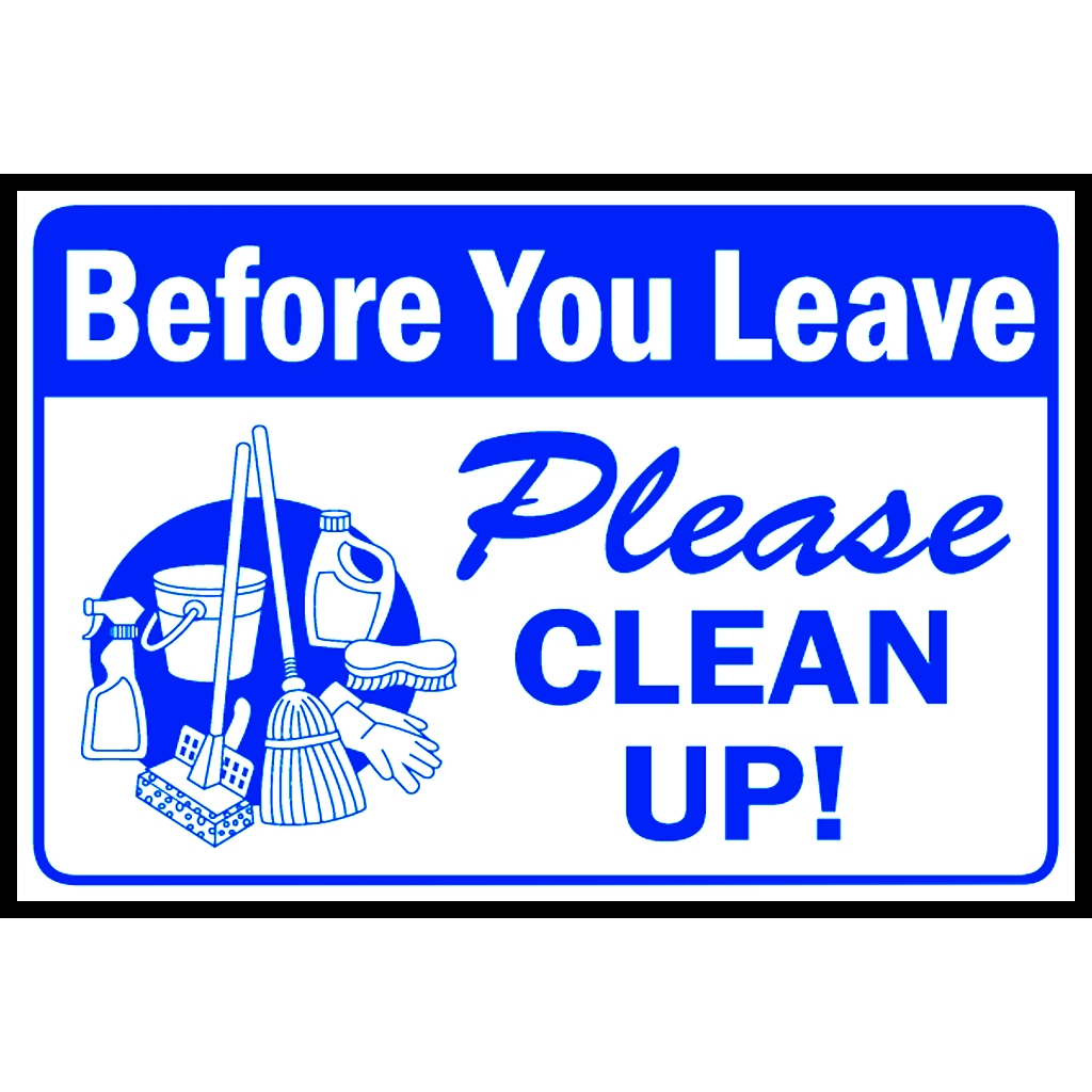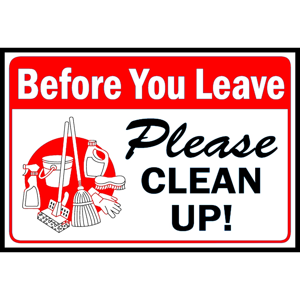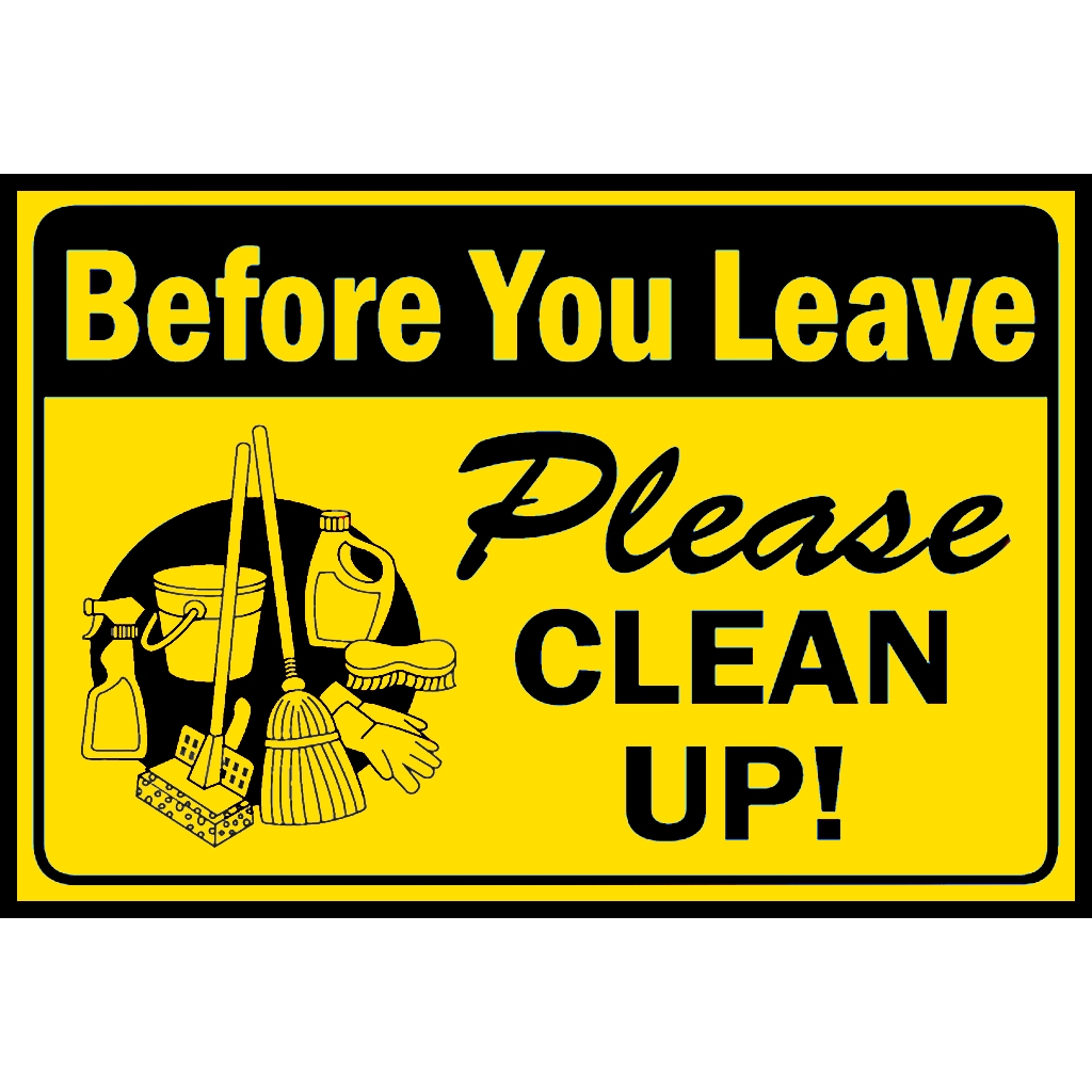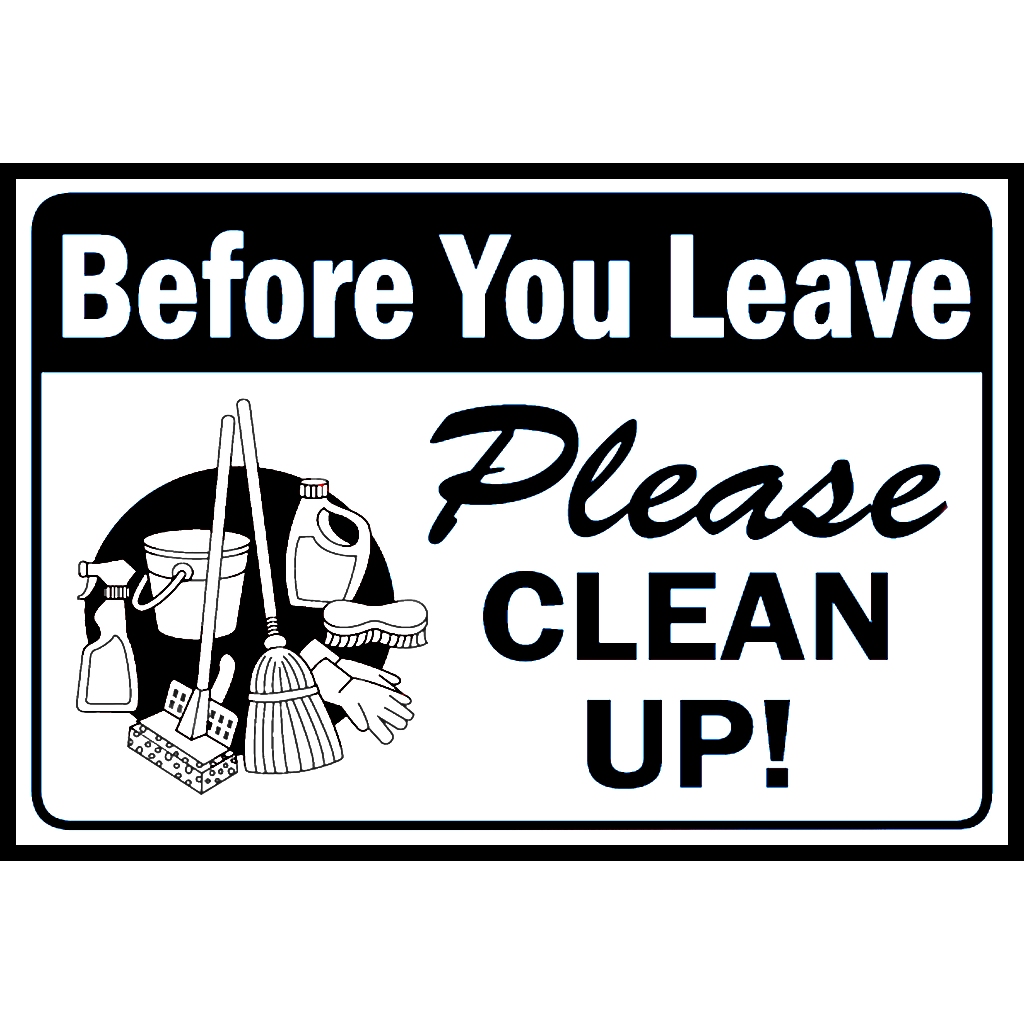 SIGN BEFORE YOU LEAVE PLEASE CLEAN UP PVC TYPE WATERPROOF AND NON-FADING