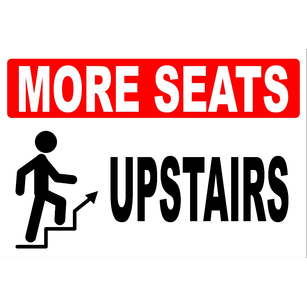 SIGN MORE SEATS UPSTAIRS SIGNAGE PVC TYPE OR PLASTIC LAMINATED WATERPROOF AND NON-FADING