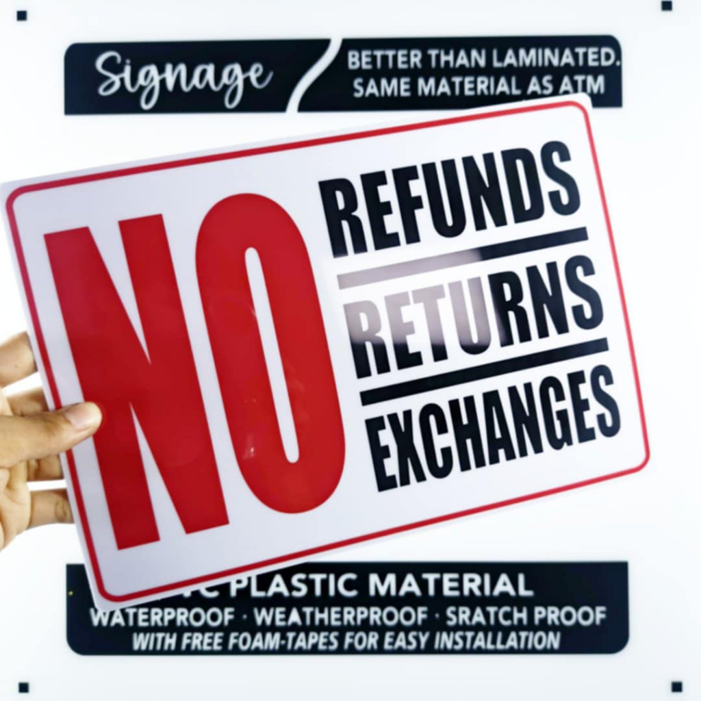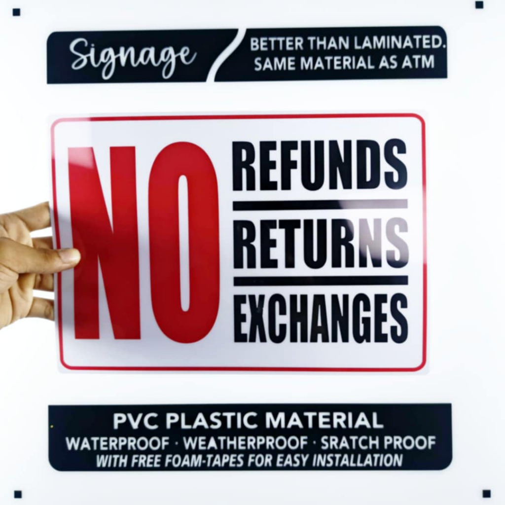 SIGNAGE - NO REFUNDS NO RETURNS NO EXCHANGE - PVC PLASTIC MATERIAL SIGNAGE