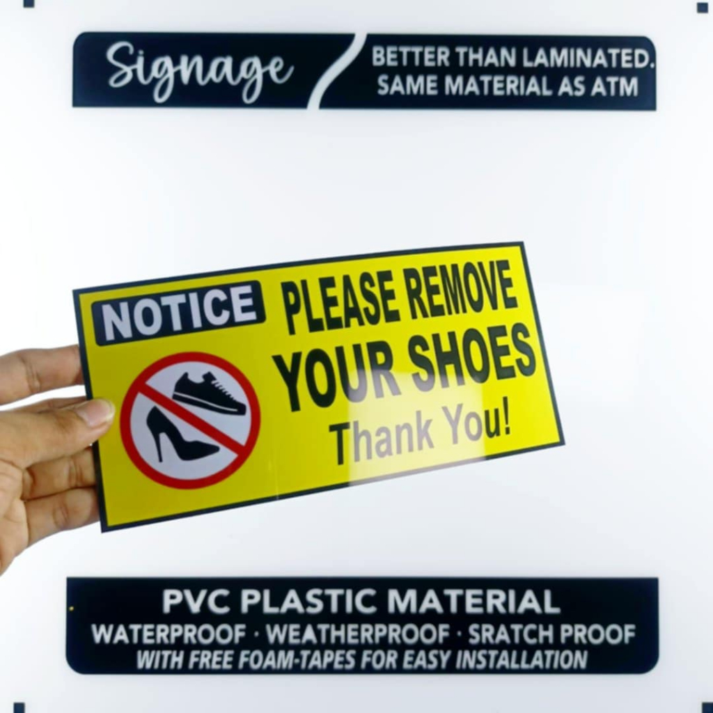 SIGNAGE - NOTICE PLEASE REMOVE YOUR SHOES - THANK YOU - PVC PLASTIC MATERIAL SIGNAGE