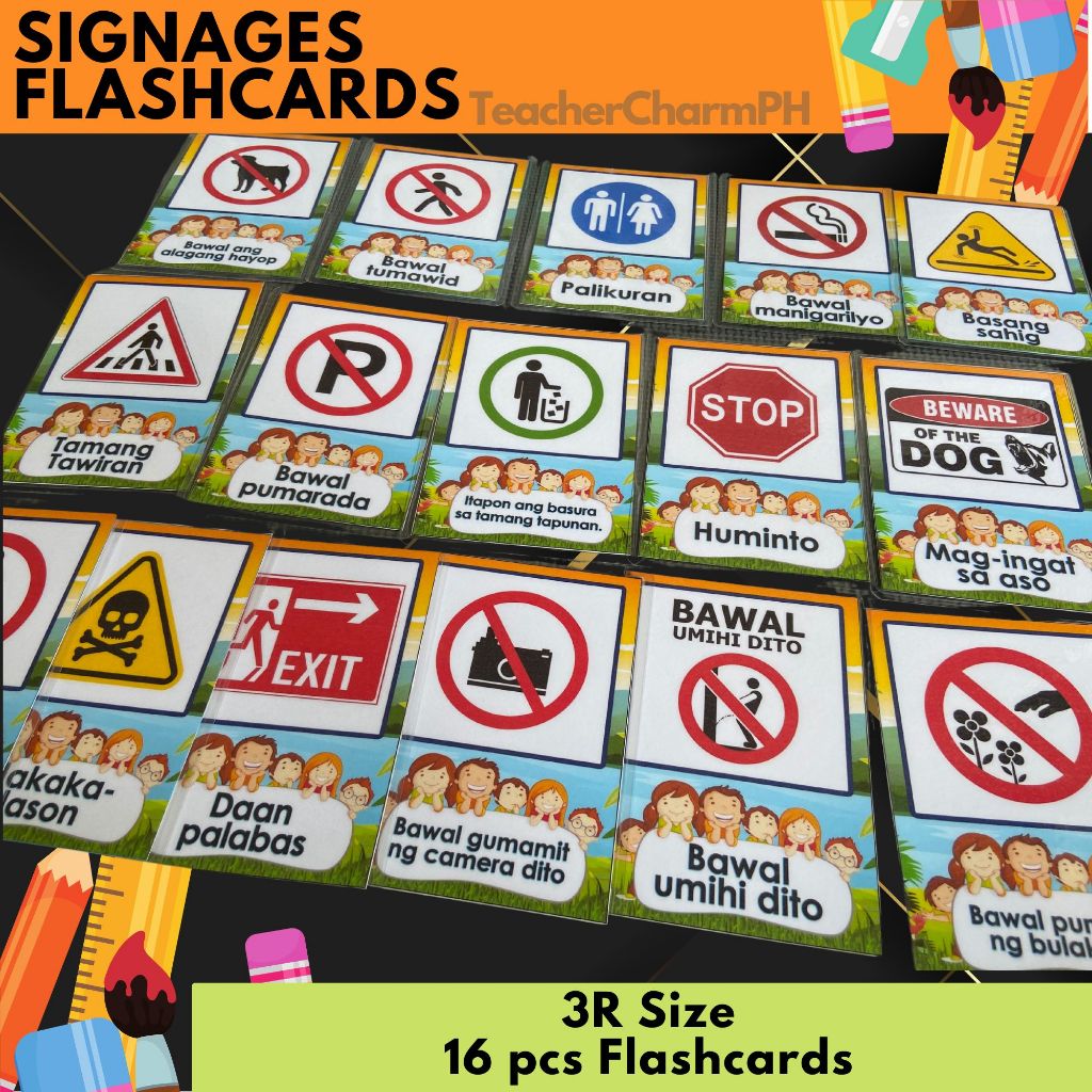 SIGNAGES TAGALOG FLASHCARDS Laminated Educational Flashcards 16pcs.