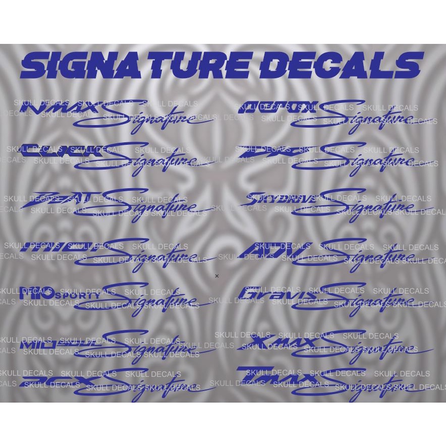 SIGNATURE DECALS FOR NMAXX, CLICK, MIO, DIO, ADV, BEAT,AEROX ETC. (MACHINE CUT OUT / WATERPROOF)