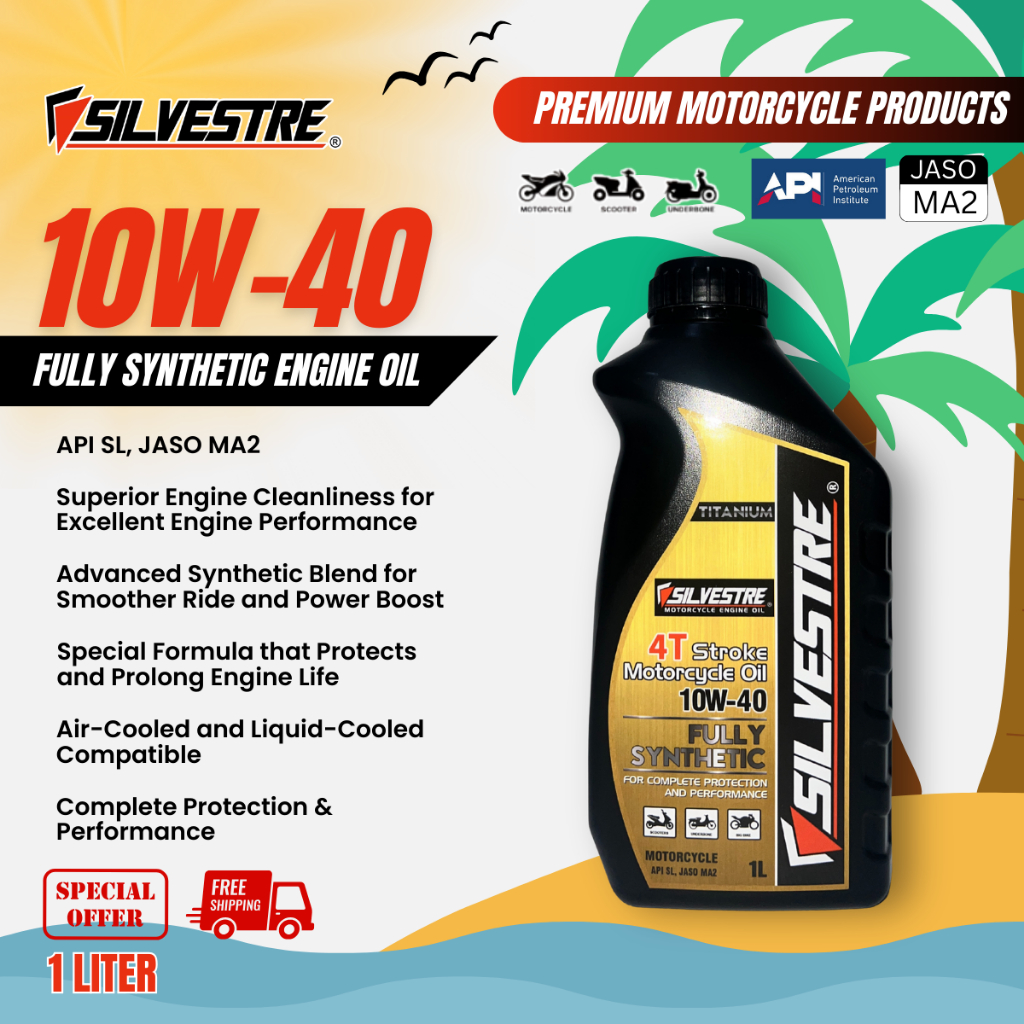 SILVESTRE Engine Oil 10W-40 (Fully Synthetic Motorcycle Engine Oil) API SL, JASO MA2 1 Liter