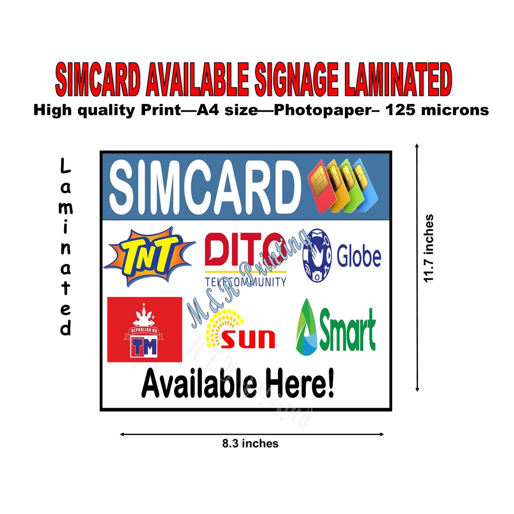 SIMCARD AVAILABLE HERE SIGNAGE LAMINATED