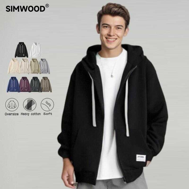 SIMWOOD Zipper Hoodie Oversize Sweatshirt Unisex Plain Casual Basic Fashion Pullover Menswear Longsl