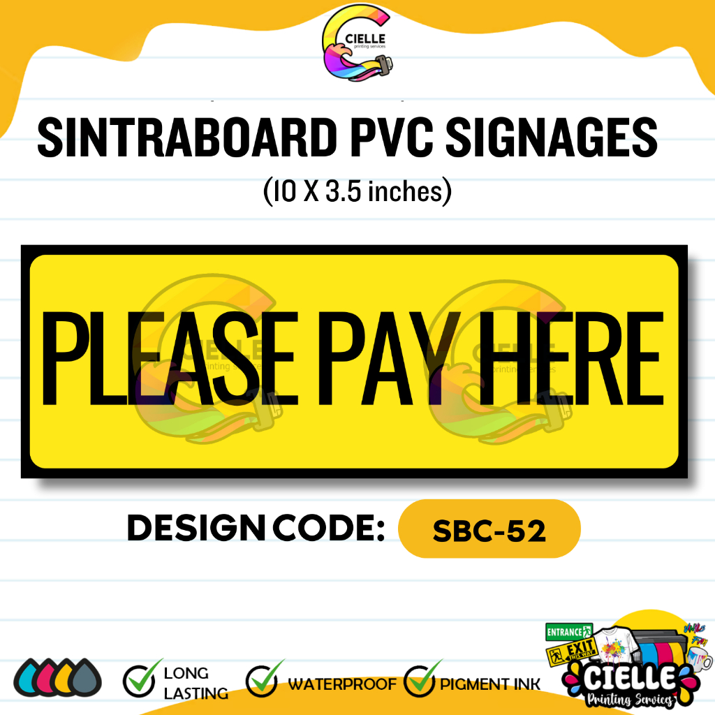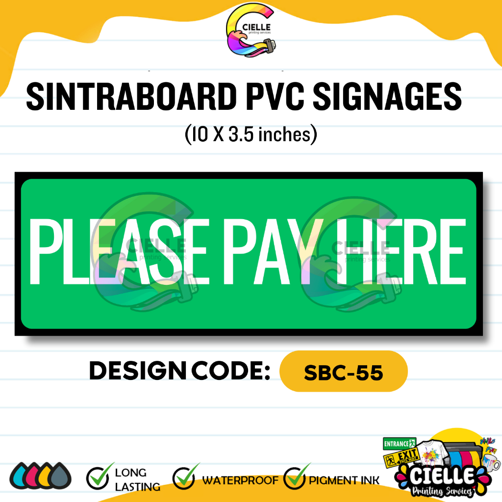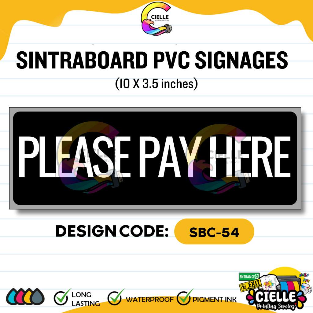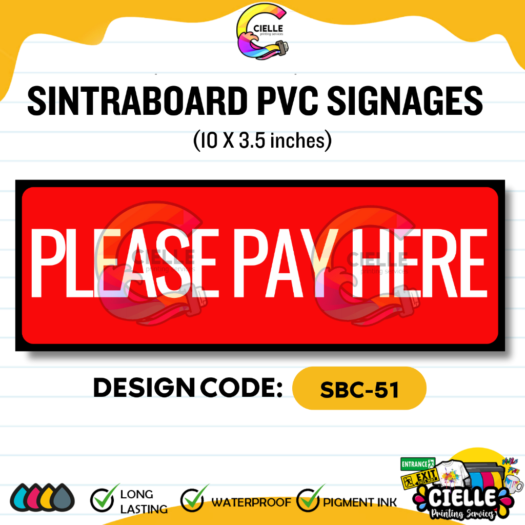 SINTRA PVC SIGNAGES (SBC-51 to SBC-55) - PLEASE PAY HERE SIGNAGE Waterproof for Store/Shop/Business
