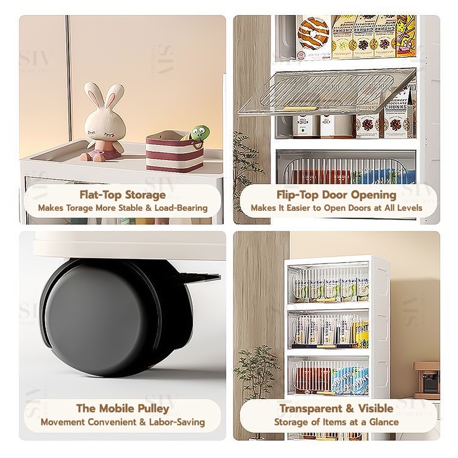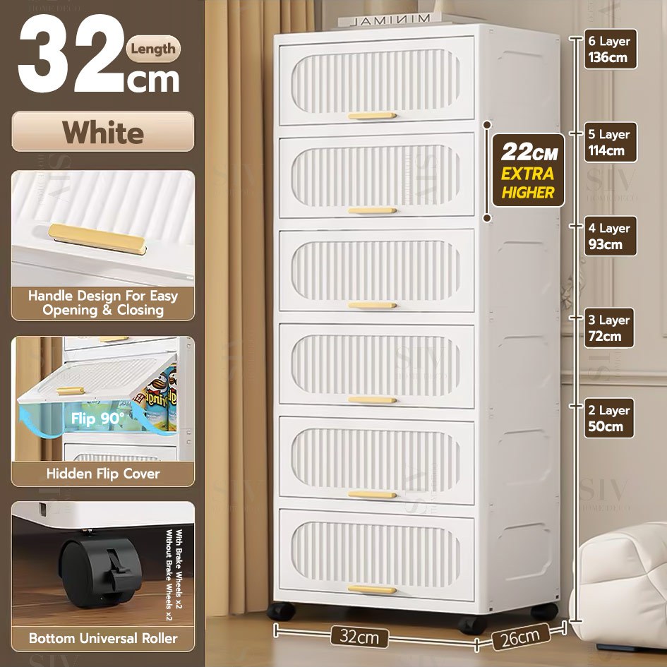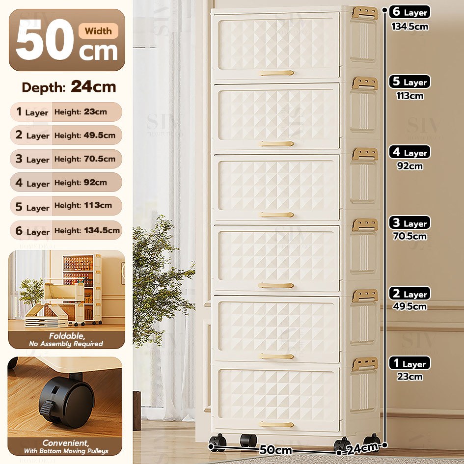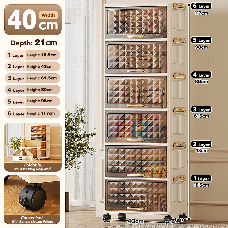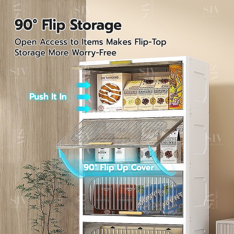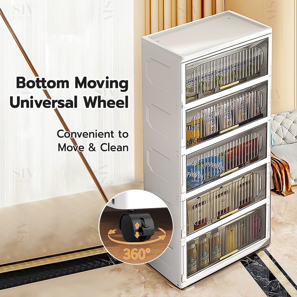 SIV 32-70cm Foldable Storage Cabinet With Flip Door Plastic Storage Box Wardrobe For Clothes Toys