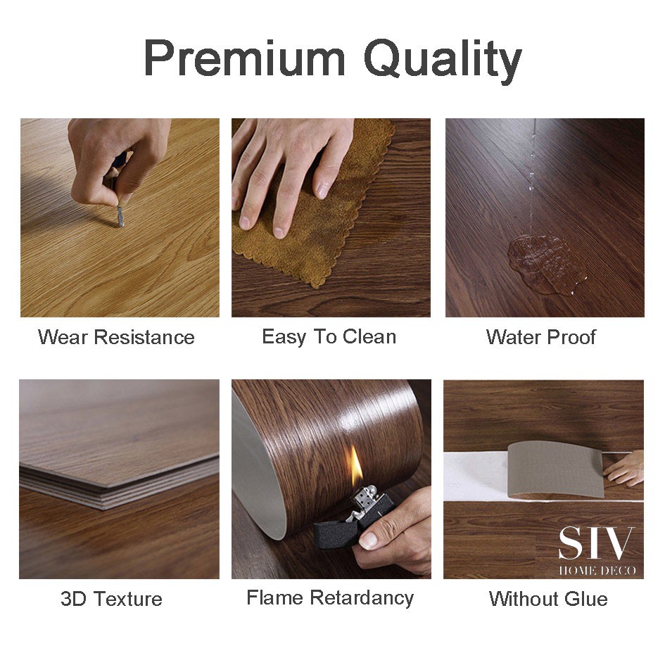 Siv 36Pcs 2Mm Thick Wooden Design 91X15 Cm Vinyl Floor Stickers Adhesive PVC Tiles Flooring