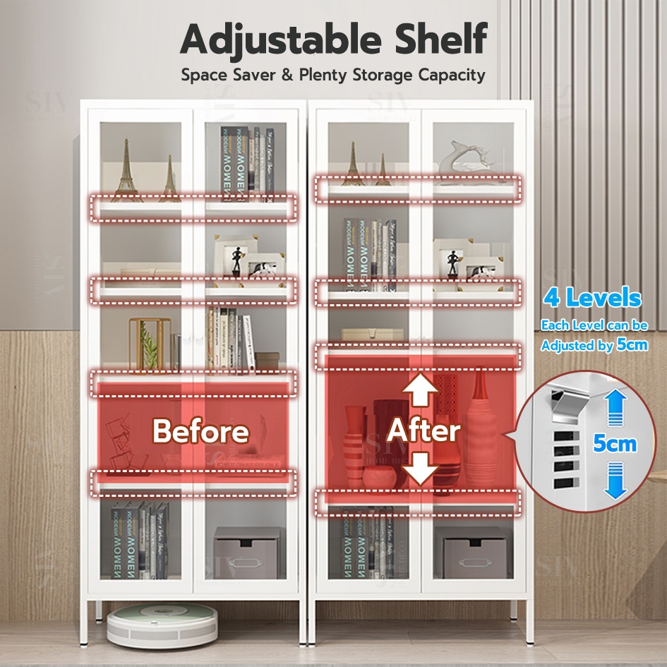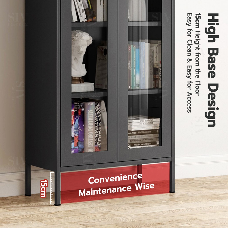 SIV Book Shelf Cabinet With Glass Door Bookcase Metal Display Cabinet Filing Cabinet For Home&Office