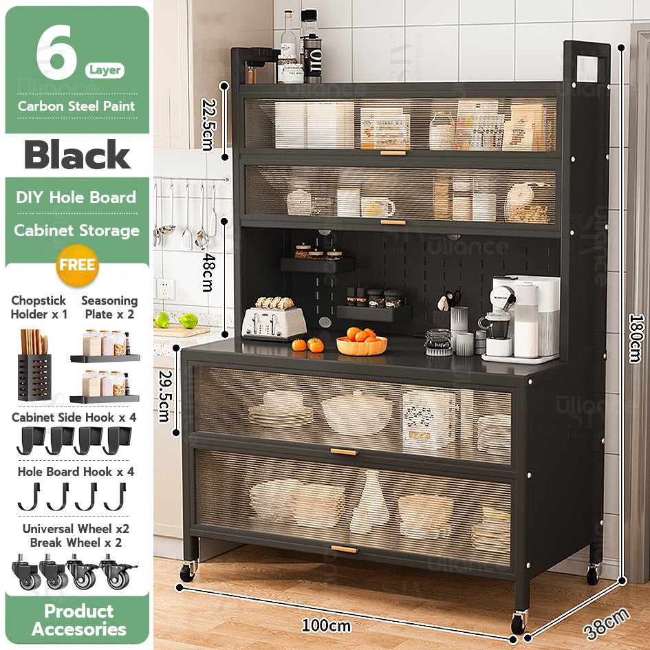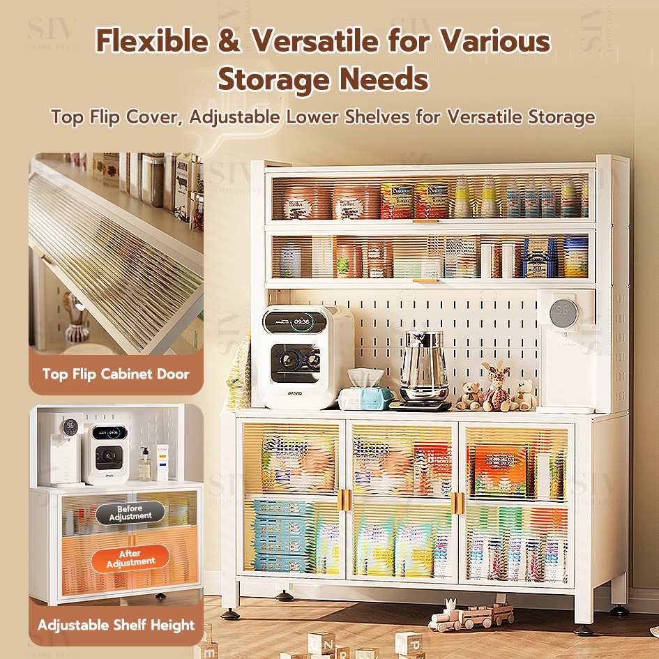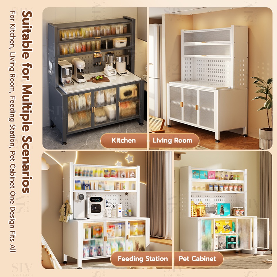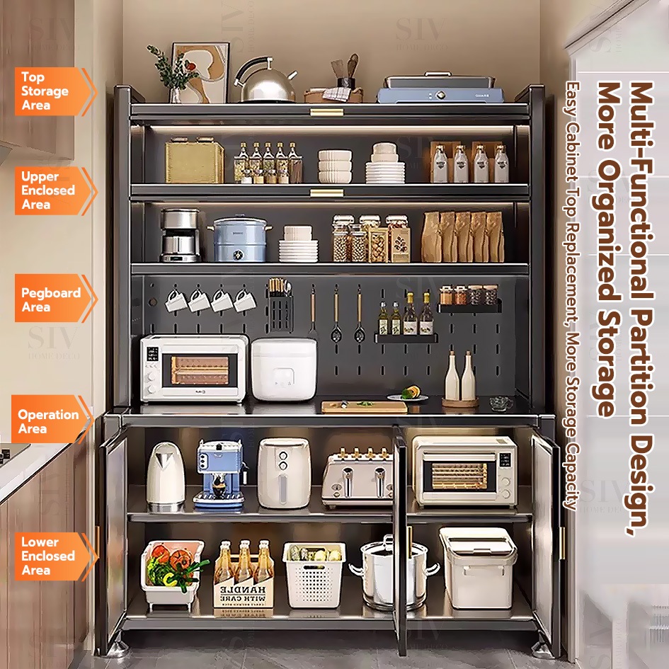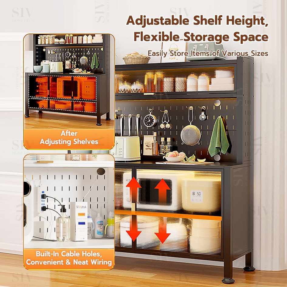 SIV Kitchen Cabinet Microwave Oven Rack Shelves With Pegboard Organizer & Wheels For Kitchen Storage