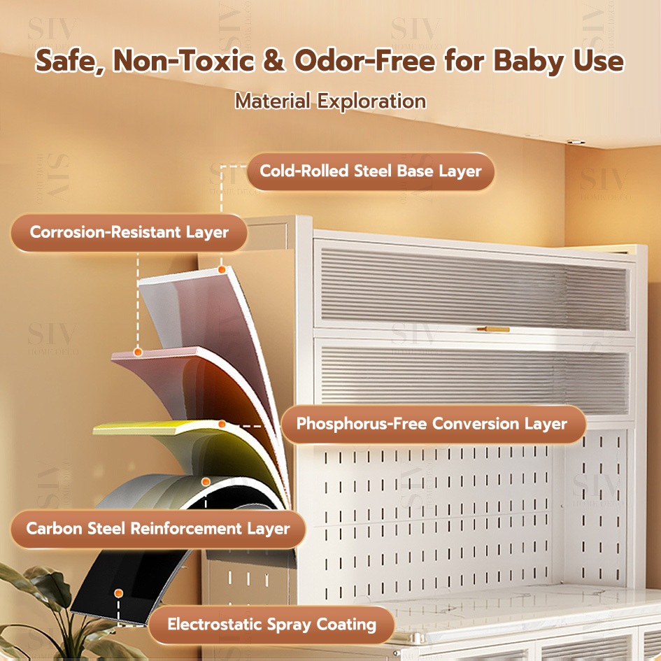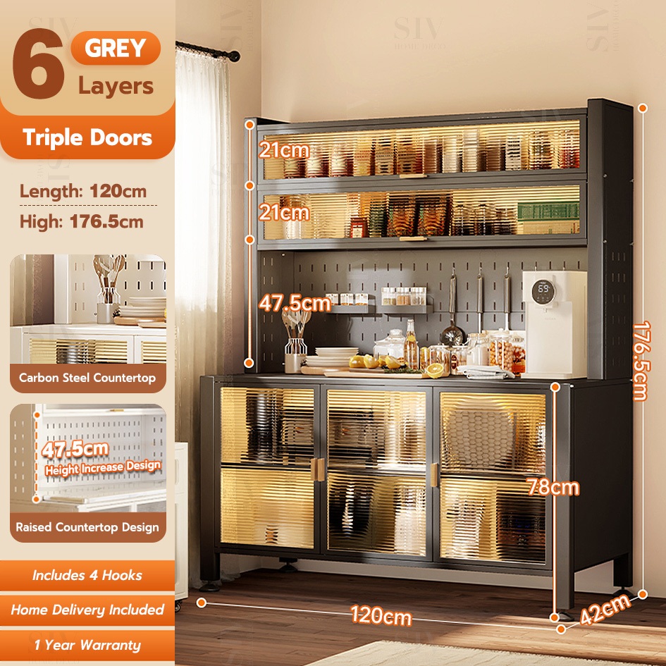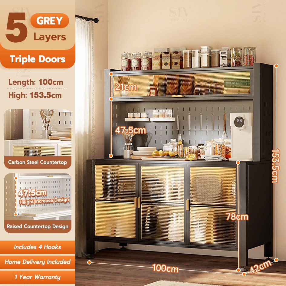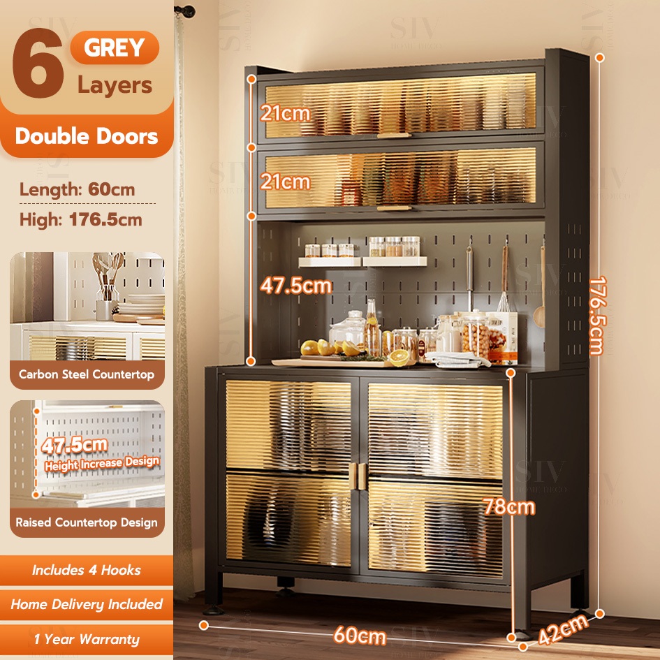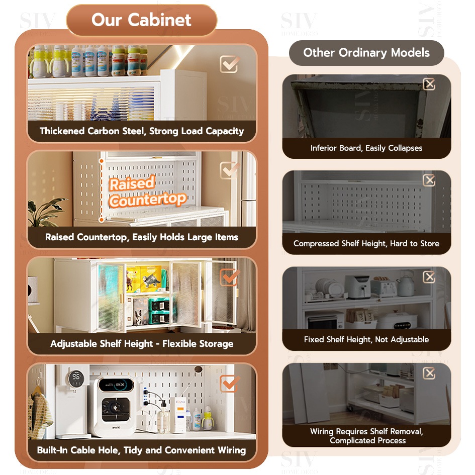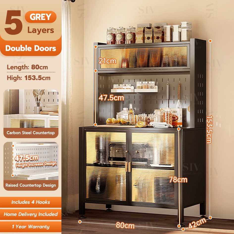 SIV Kitchen Cabinet Microwave Oven Rack Shelves With Pegboard Organizer & Wheels For Kitchen Storage