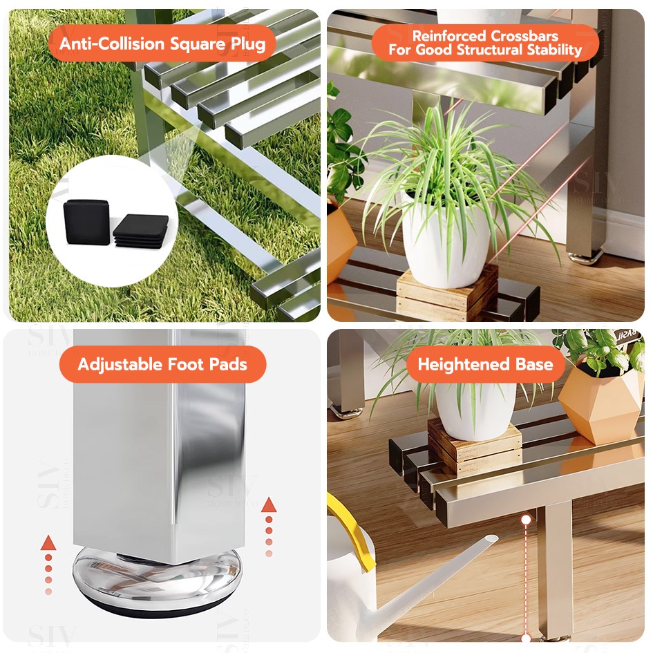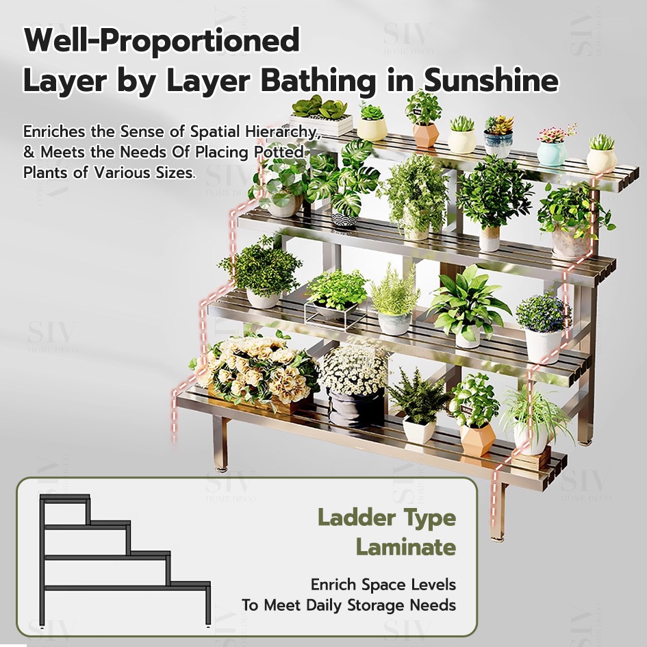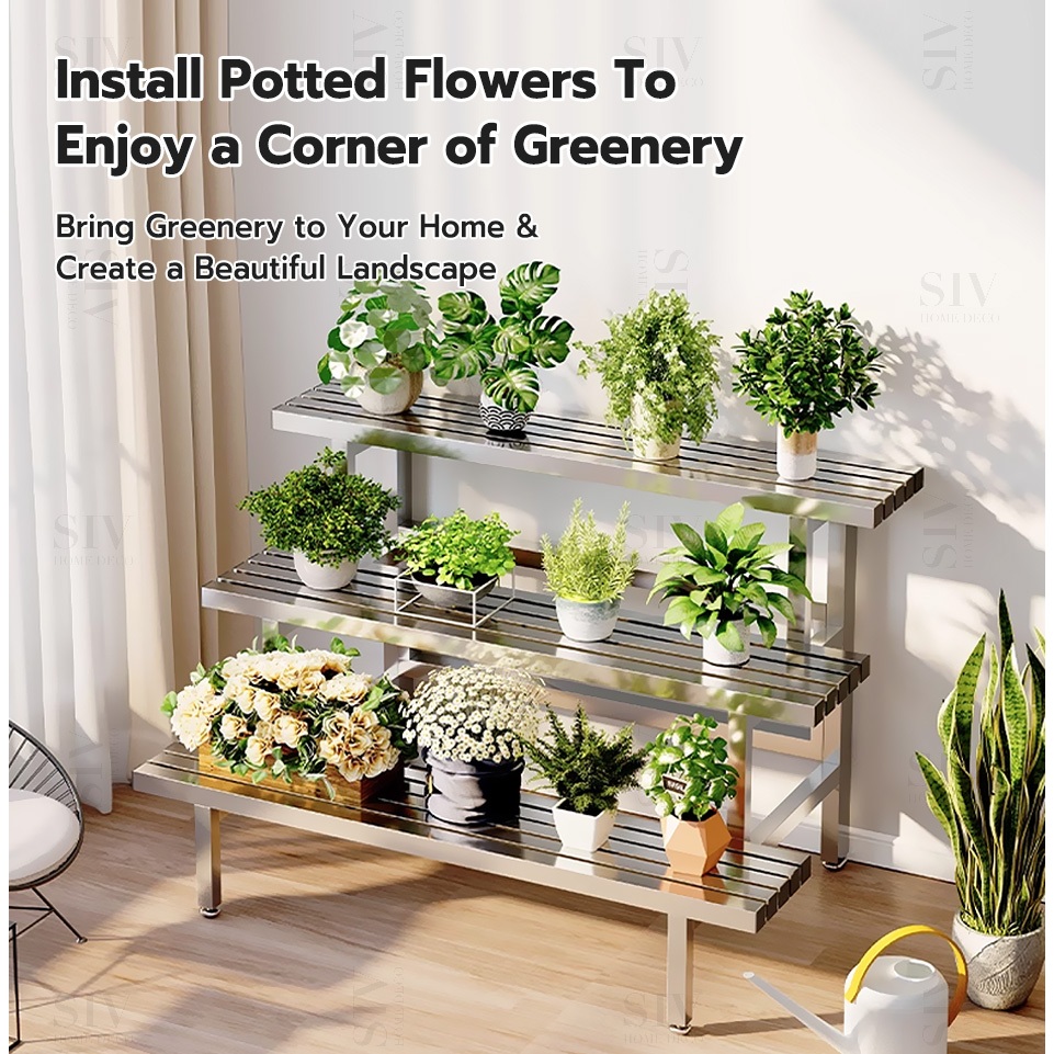 SIV Stainless Steel Plant Stand Flower Stand Metal Pot Display Rack For Indoor Outdoor Garden