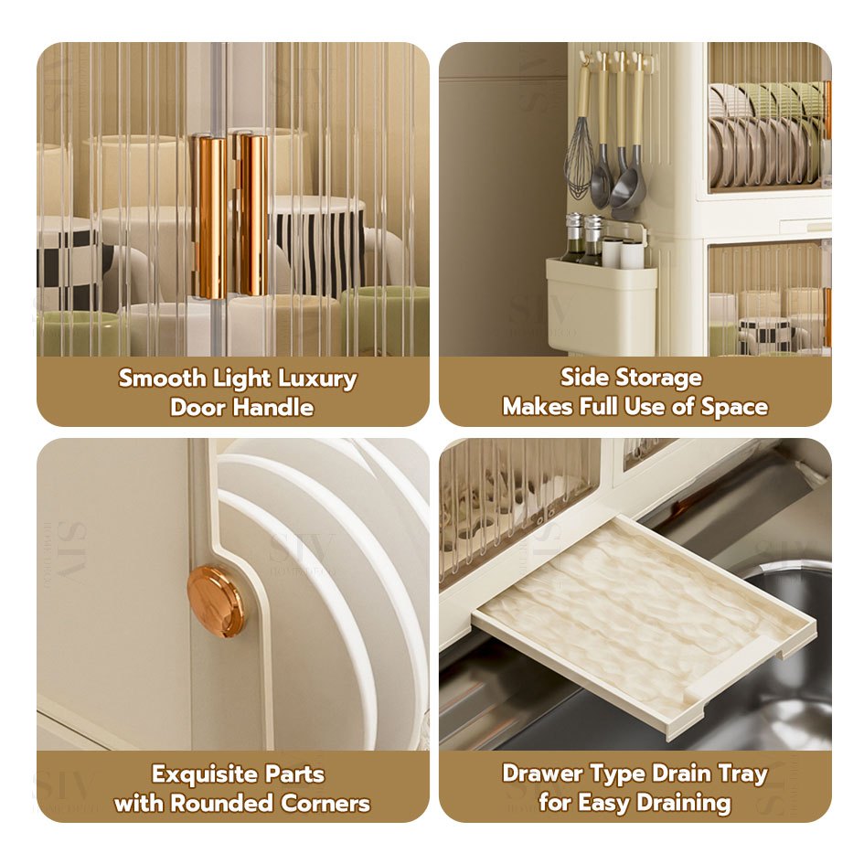 SIV Plastic Dish Cabinet Foldable Dish Drainer Drying Rack Aesthetic With Cover For Plates Bowls