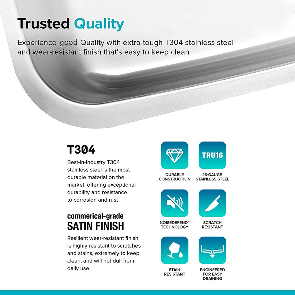 Siv Single Stainless Steel Kitchen Sink, Heavy-Duty & Durable
