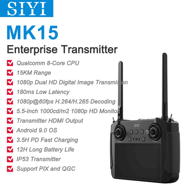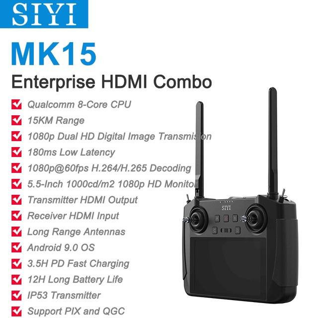 SIYI MK15 Mini HD Handheld Radio System Transmitter Remote Control 5.5-Inch Monitor 1080p 60fps 180m