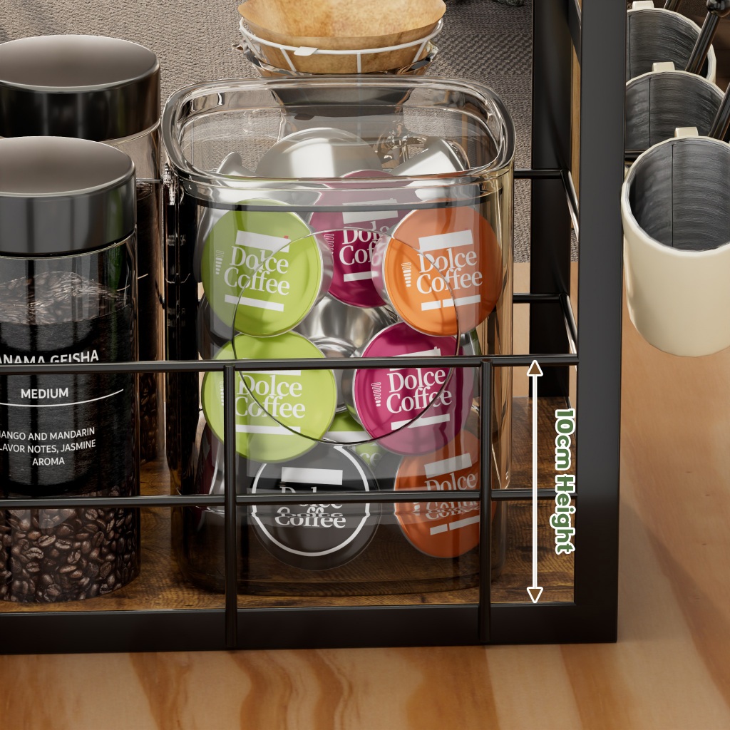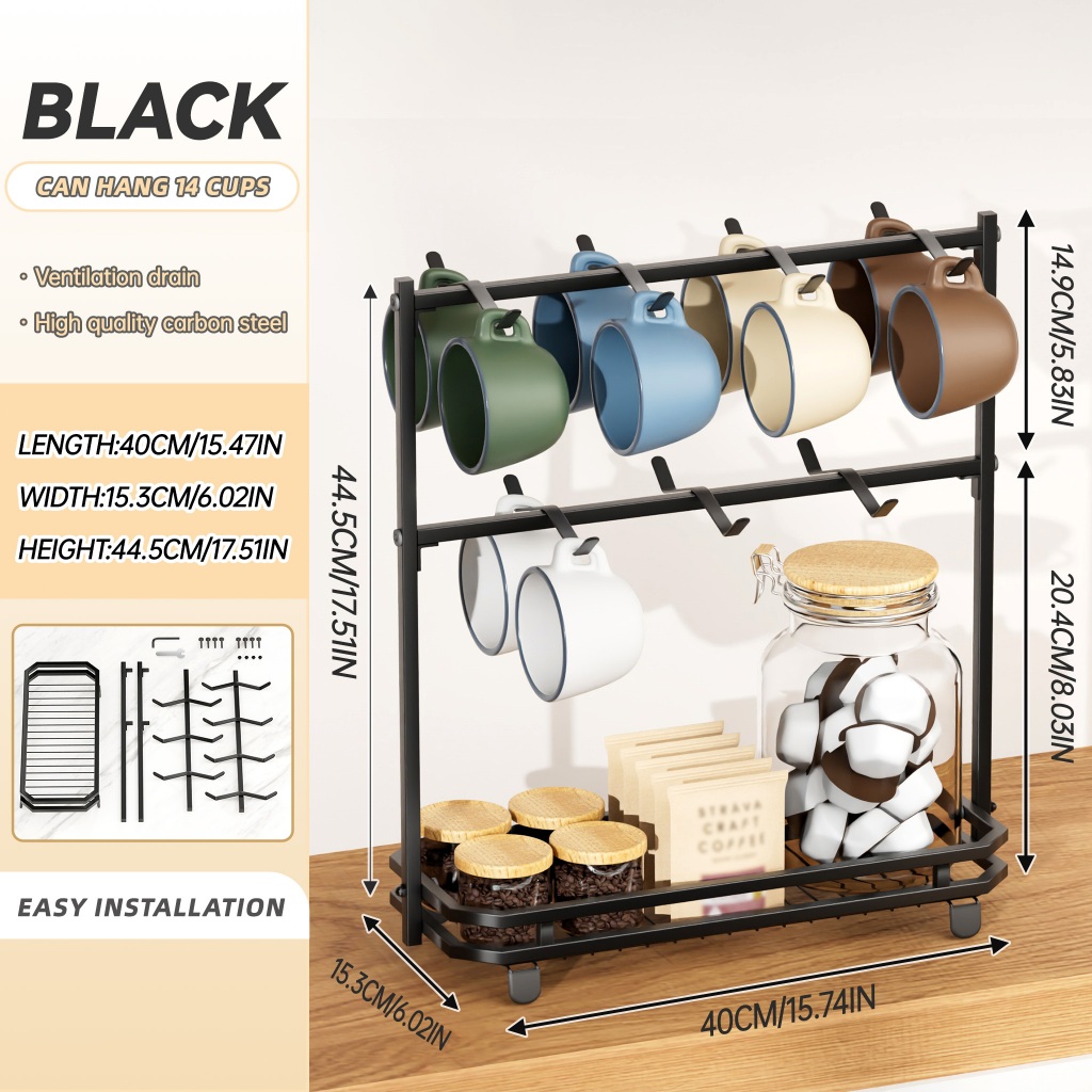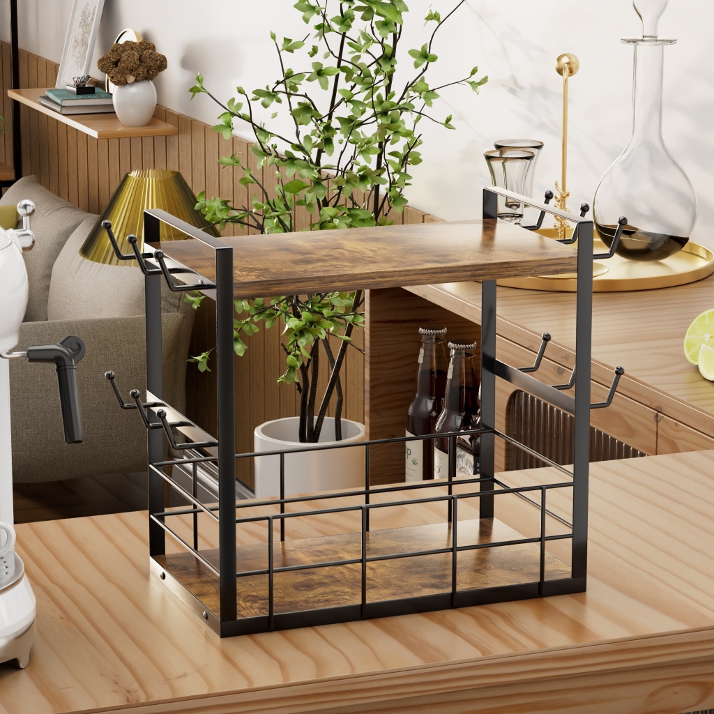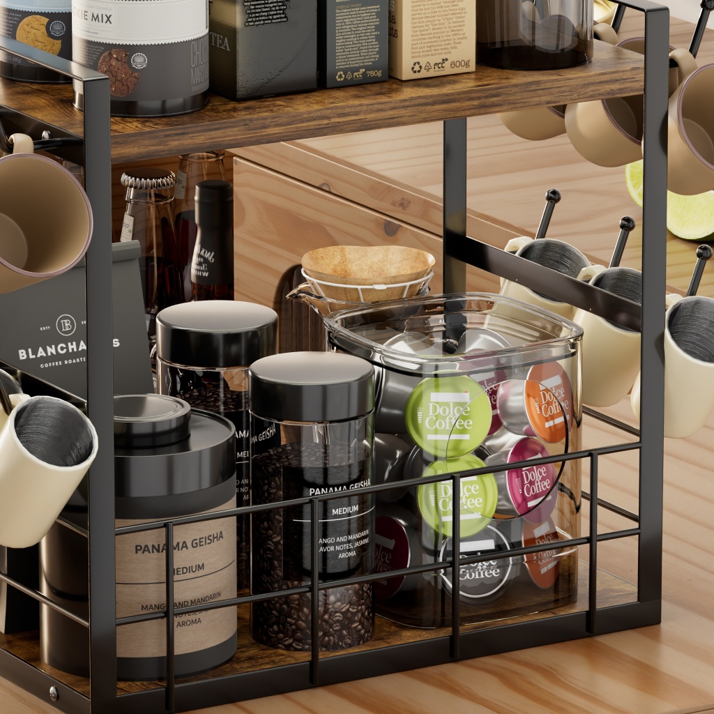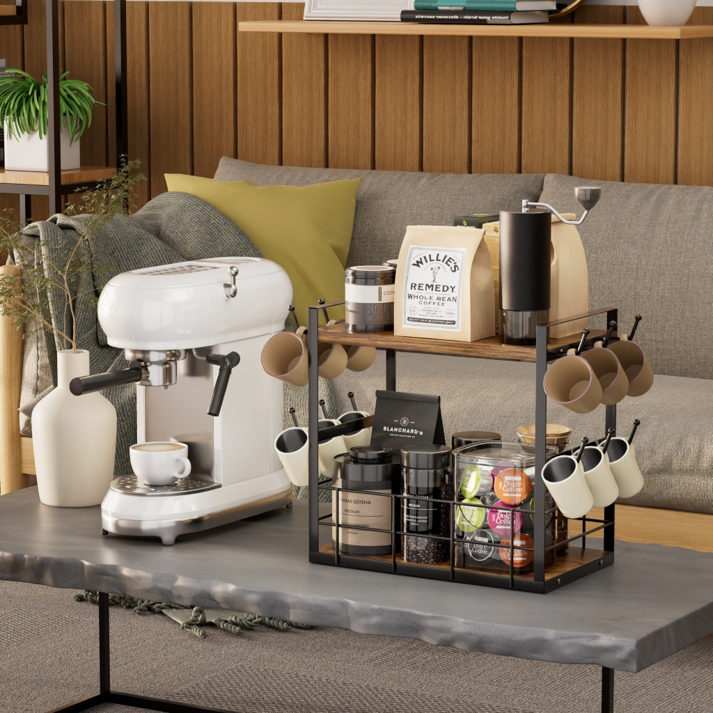 SJ Coffee Storage Rack Tea Bag Organizer 2 Tier Hangable Coffee Cup Organizer Metal Wooden Mug Rack