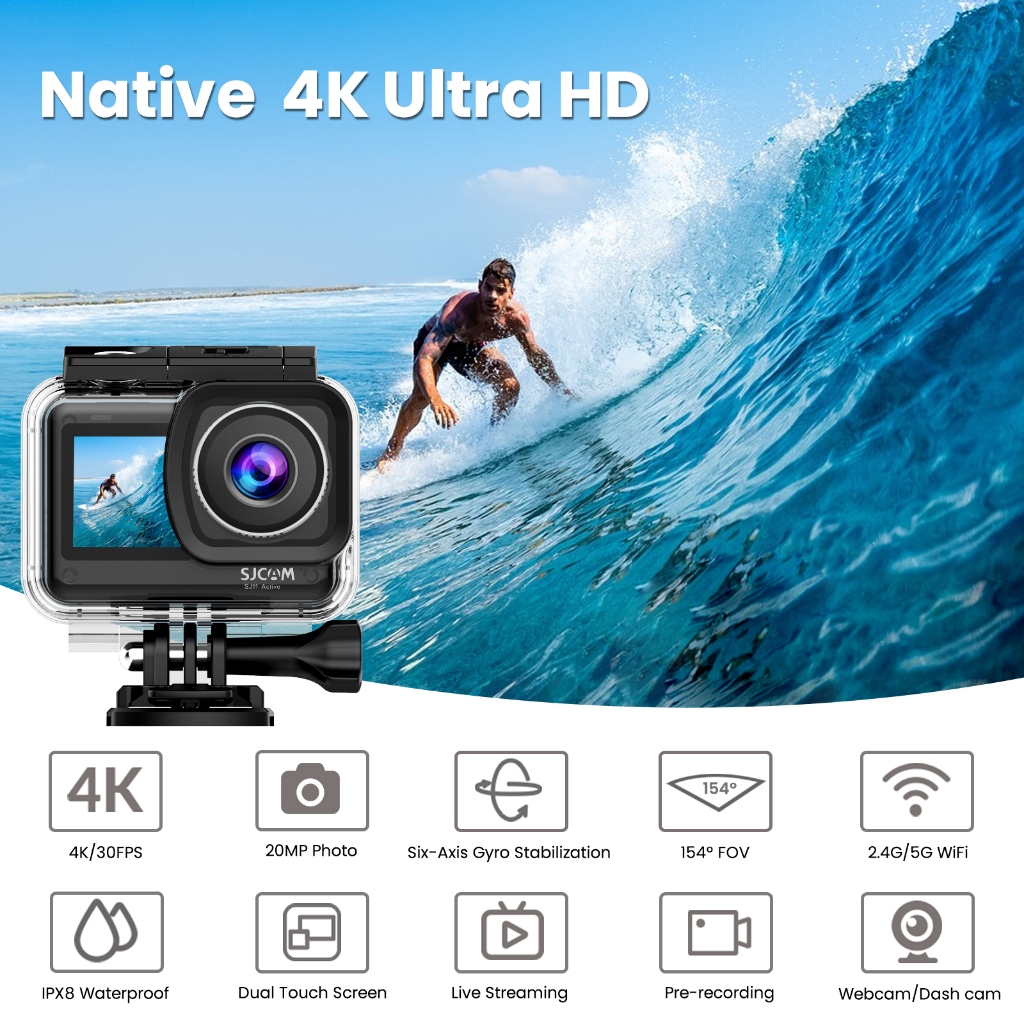 SJCAM SJ11 4K Action Camera, 5M Waterproof Underwater, Motorcycle Helmet Camera, OIS+EIS stabilization, Ultra FOV with Active HDR, 5G WiFi,