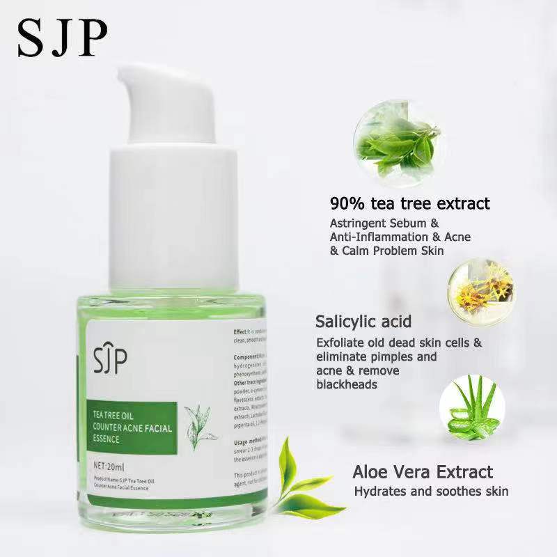 SJP Tea Tree Essencial Oil Facial Skin Care Serum Spot Treatment Targets Redness Bumps Acne Dry Itchy Pure Skincare Oils 20ml