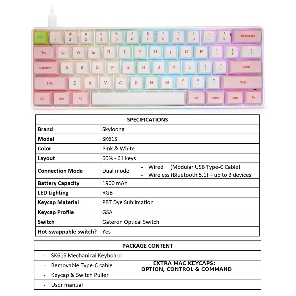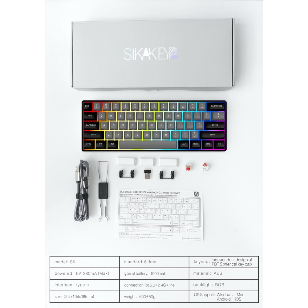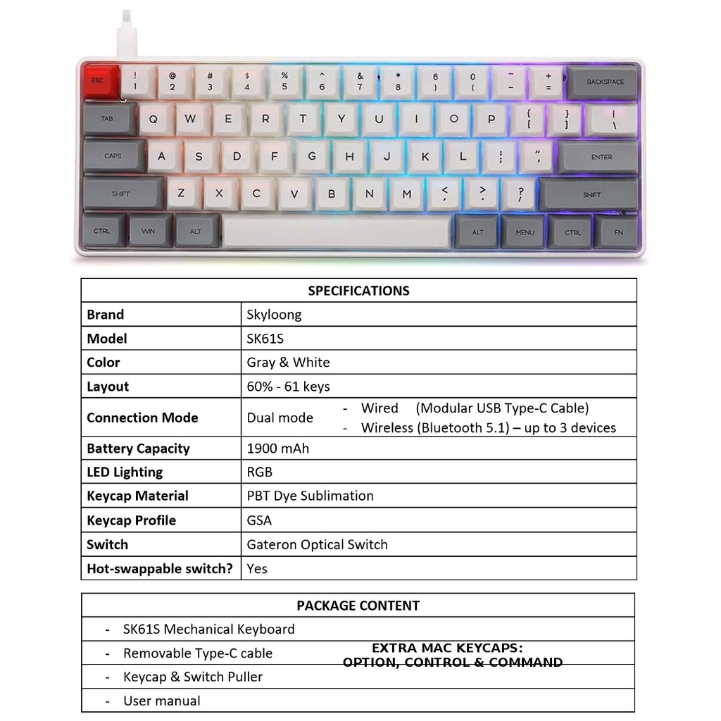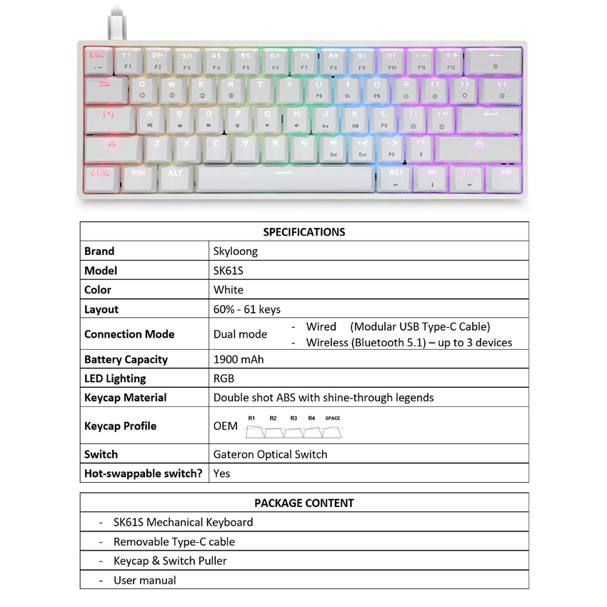 SK61S SK61 GK61 ( same board sold by EPOMAKER ) Mechanical Optical Keyboard RGB Hotswap Bluetooth