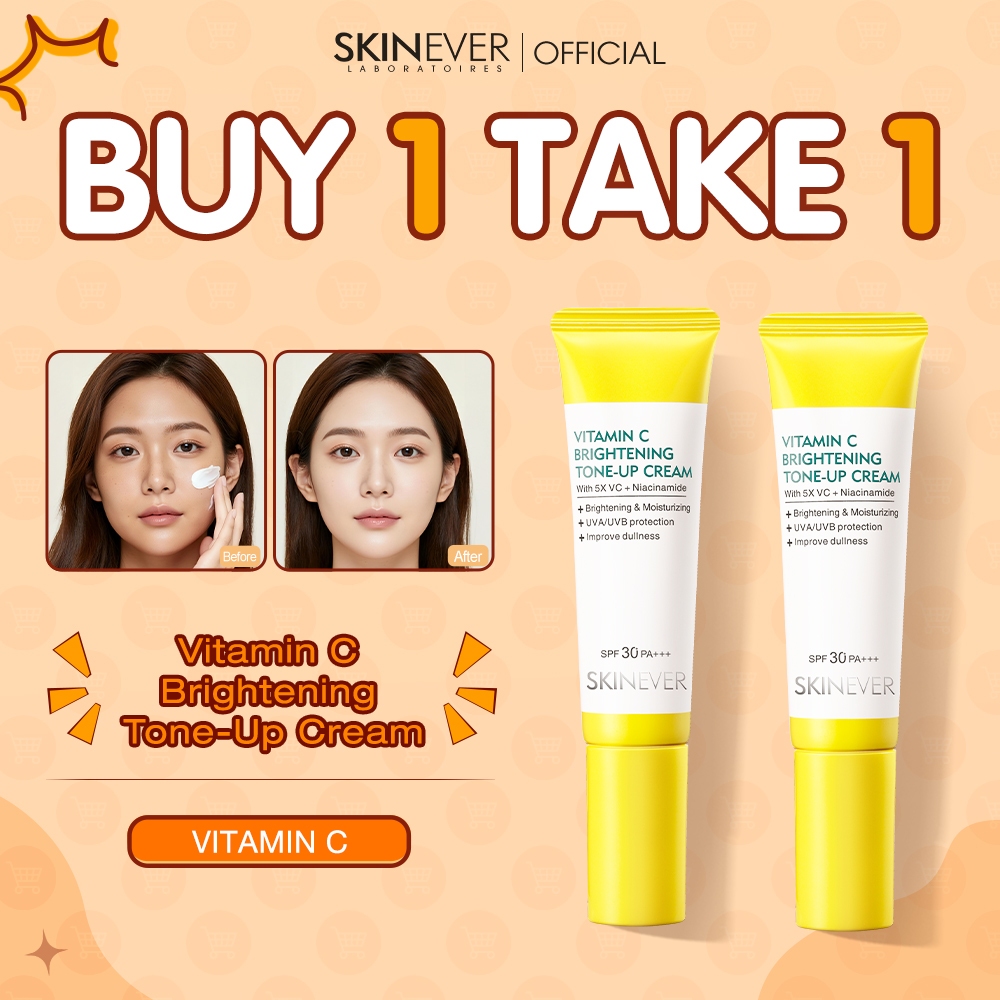 SKINEVER 2 IN 1 Vitamin C Tone-Up Sunscreen Instant Brightening Cream for Face SPF 30 Natural Glow