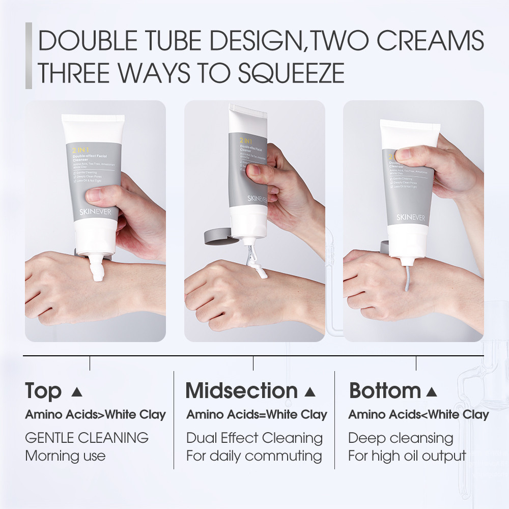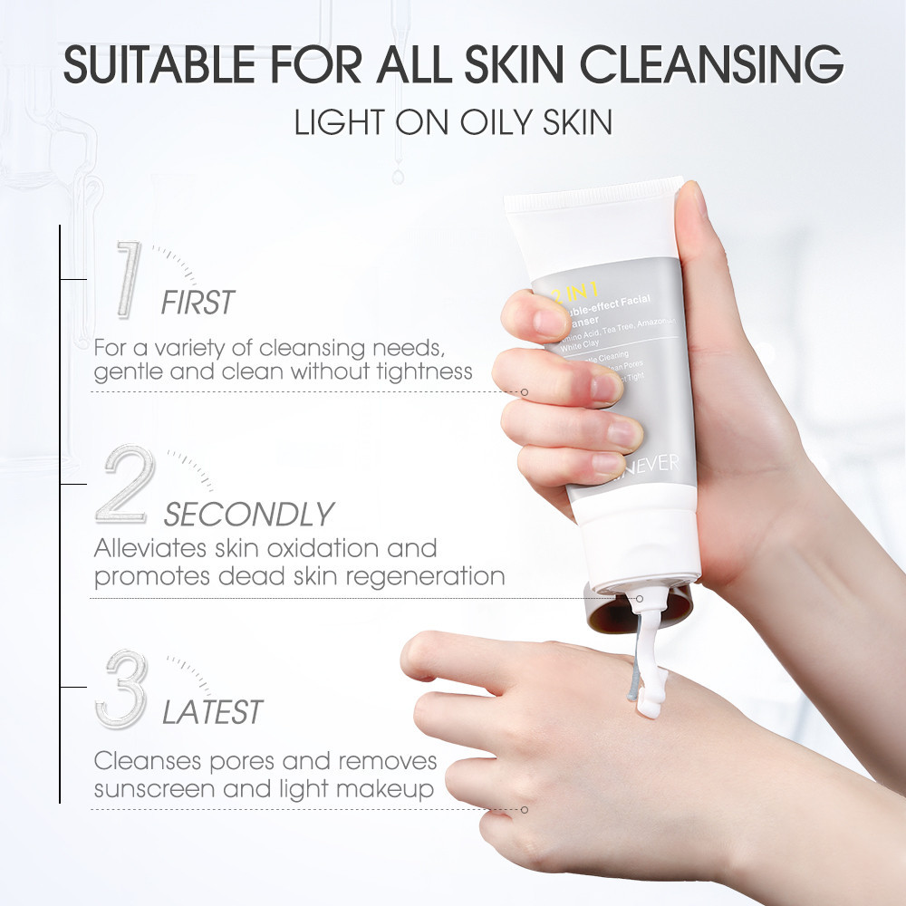 SKINEVER Double-Effect Facial Cleanser Suitable For All Skin Types For Oily/Greasy Skin Clean Pores 2 In 1 Skin Care