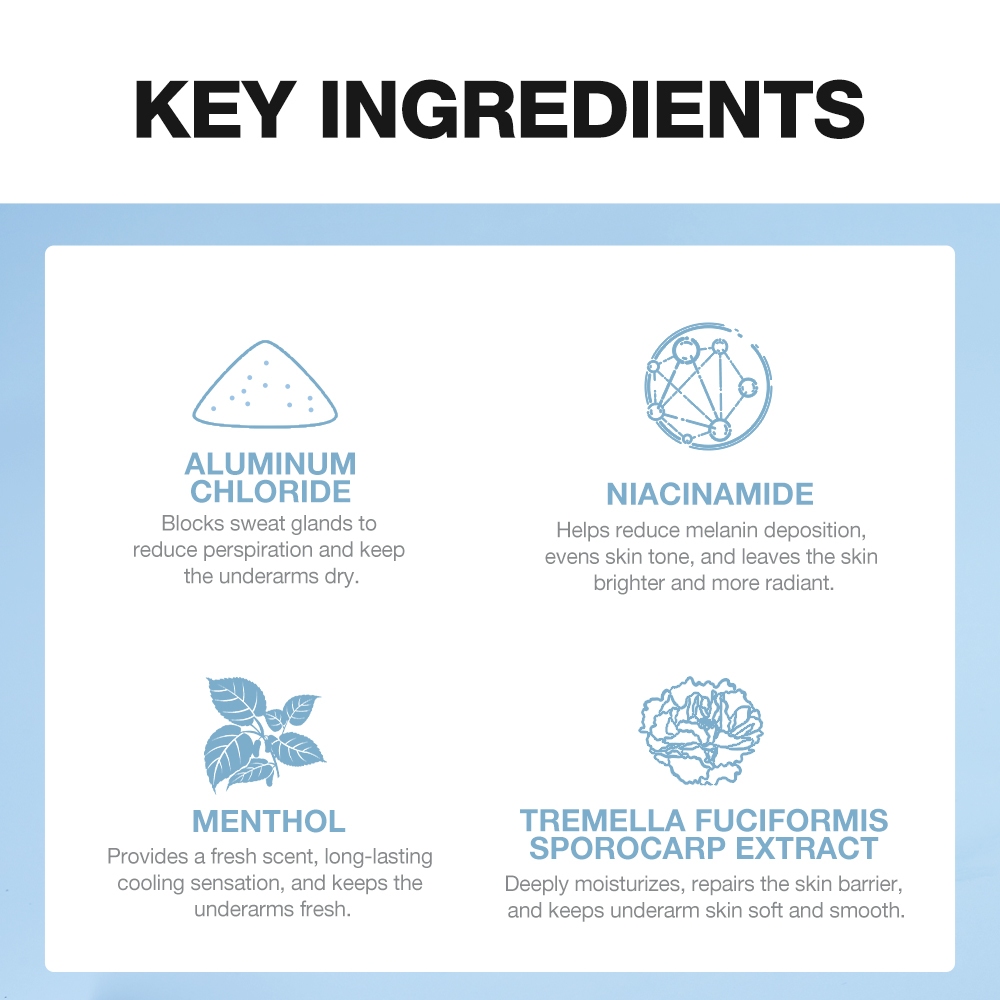 SKINEVER Whitening & Cooling Underarm Cream with Niacinamide Long-Lasting Sweat Control Deodorant