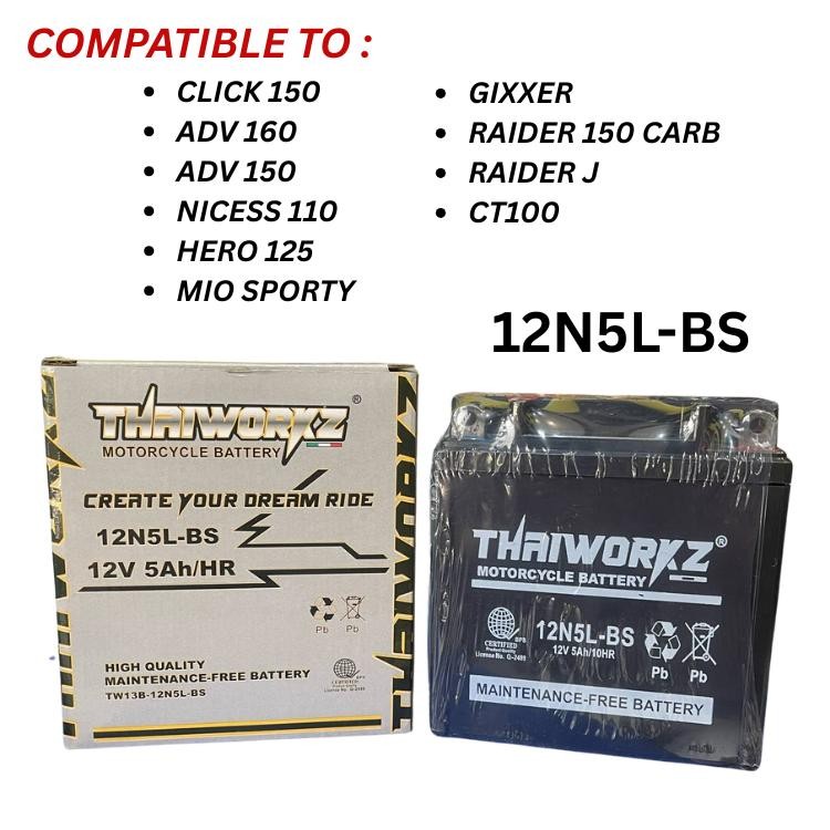 SKYGO HERO 125 THAIWORKZ MOTORCYCLE BATTERY ORIGINAL SIZE 12N5L-BS HIGH-QUALITY MAINTENANCE FREE
