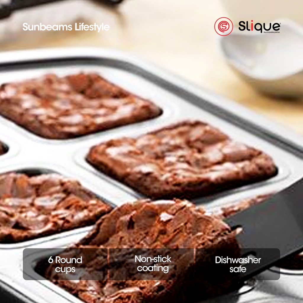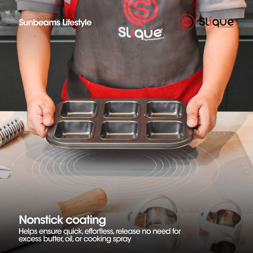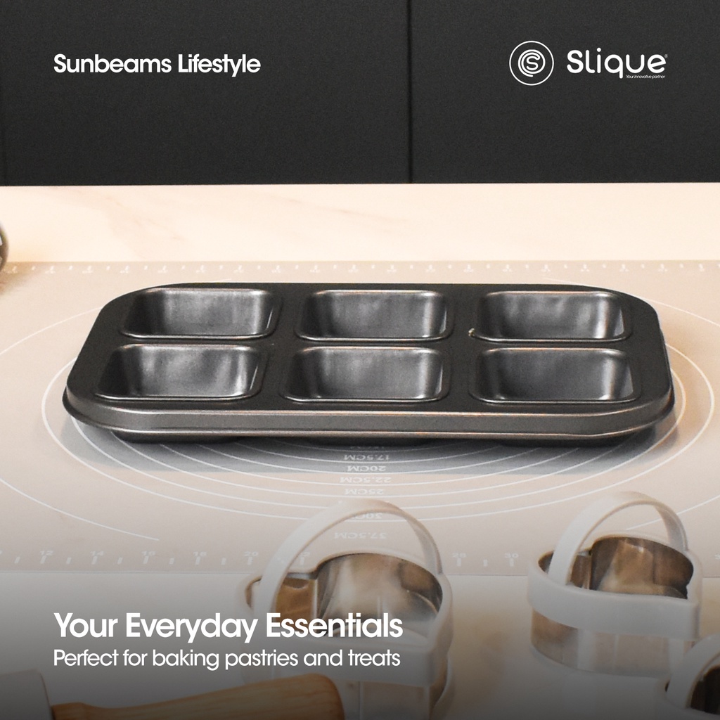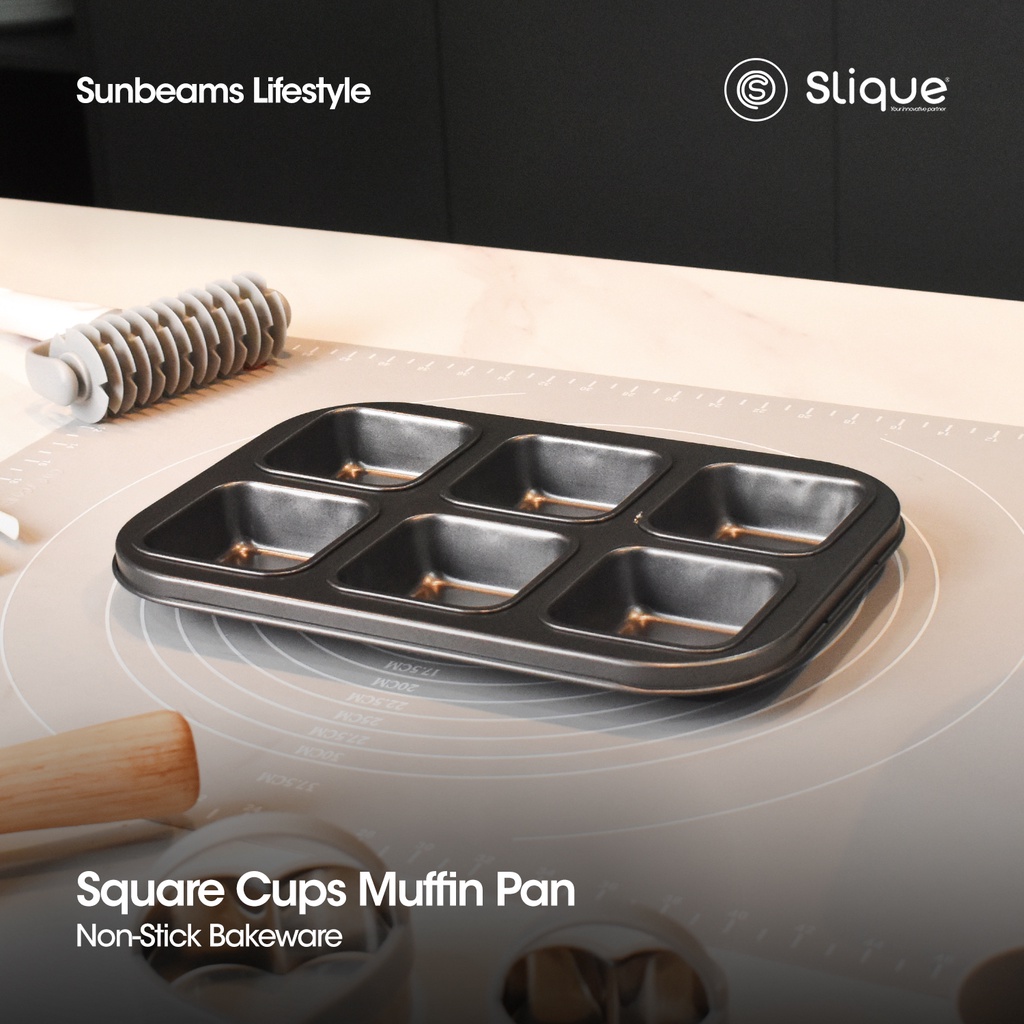 SLIQUE Square Muffin Pan 26.5x18.5x3cm [Set of 6] | Oven Safe | Non-Stick | Baking Essentials